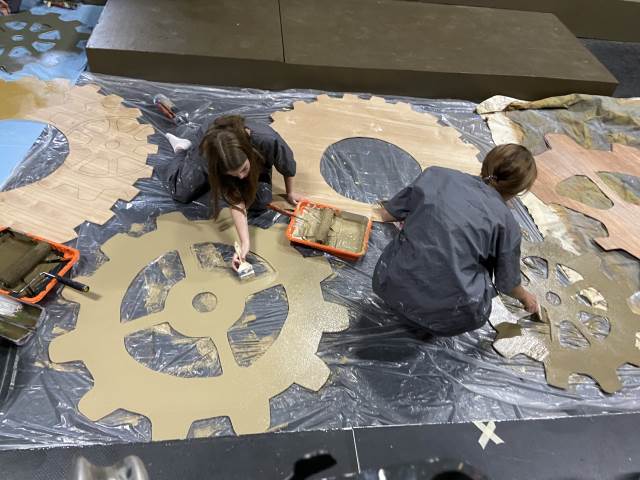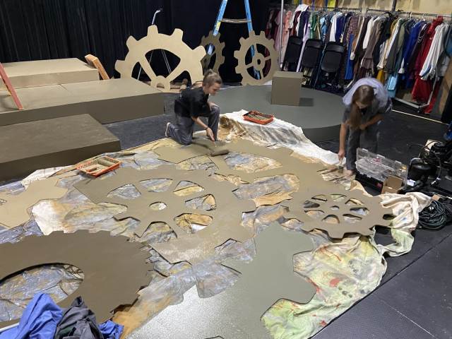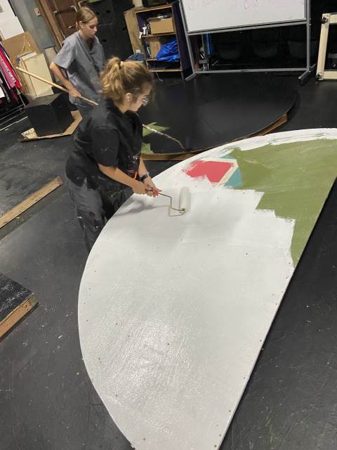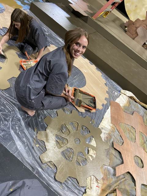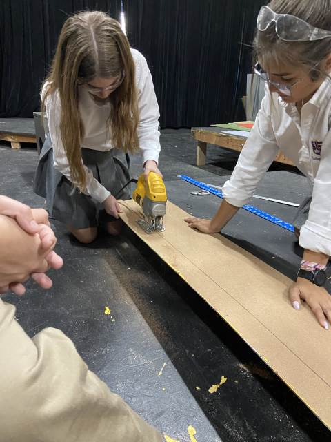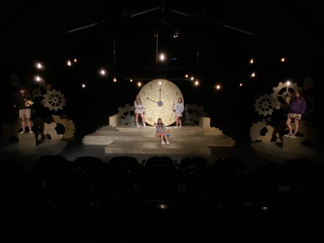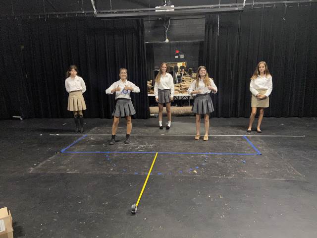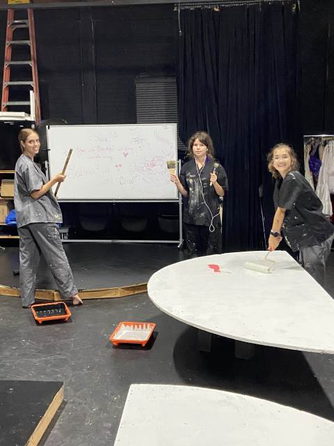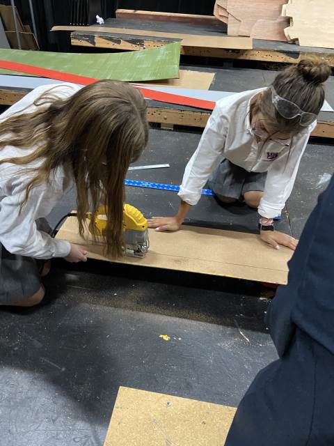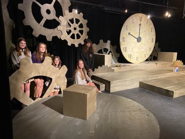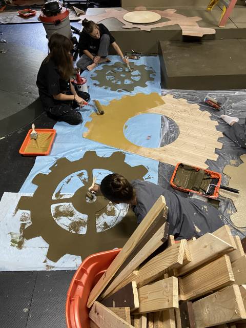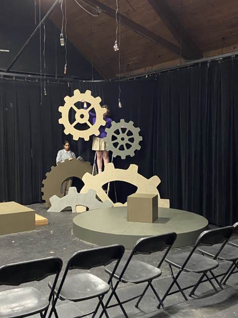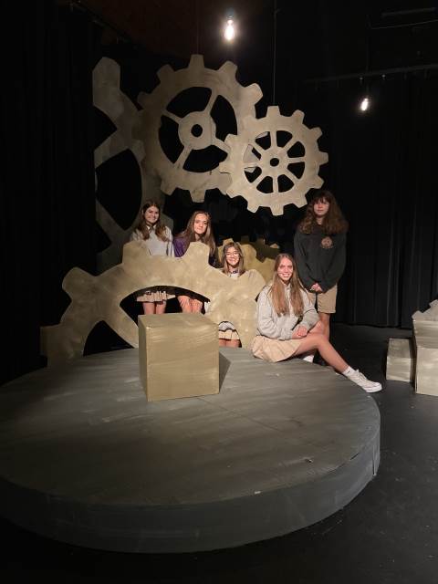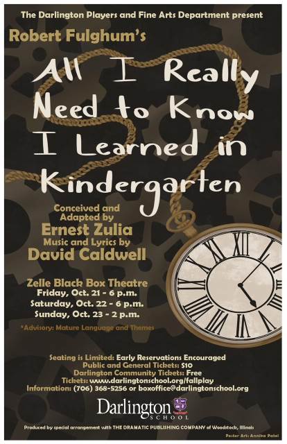 The fall play, "All I Really Need to Know I Learned in Kindergarten," was a great success! The cast and crew did a fantastic job bringing this performance to life. So many creative processes must come together for a theatrical production to materialize. Set design and building are an important piece of the puzzle. This year's fall play set was conceived and designed by senior and International Thespian Society 7-star honor initiate, Annika Patel. Annika also designed the show's poster in order to align the publicity graphics with the aesthetic of her conceptual set. Her design clearly reflected our rich company discussions of the play's core themes and essential questions. We are so proud of our talented designer and tenacious builders! Annika's set design was built and rigged by Theatre Lab students, Carolin von Hagen, Alexa San, Kensie Waller, Julia Beauchamp and Maidee Brown. Congratulations!