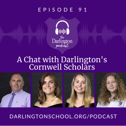 In this episode, Assistant Head of School for Enrollment Management Matt Peer talks with Darlington's Cornwell Scholars, boarding seniors Emma Adams and Mika Lynn and sophomore Nixon Prior. They chat about the their involvement and the opportunities that the Cornwell Scholarship has provided them at Darlington.
