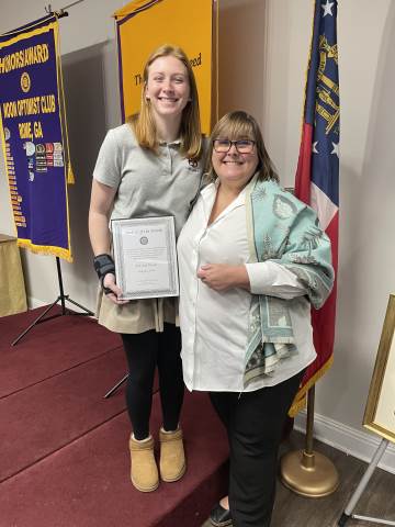 The daughter of Lindsay and Chad Woods of Rome, Ava Ann will be honored at an Optimist Club luncheon on Oct. 21.