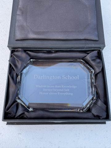 “You students here today have received a great education founded in wisdom, service, and honor,” continued Irby, who gifted the members of the senior class with glass paperweights engraved with the school motto. “The Darlington motto alone, or any mission statement, is not enough to get you through life and make every hard decision, but combined with hard work, family, and faith, the Darlington motto will help you … The future is bright with you guys in it.”
