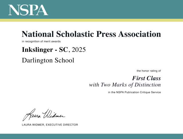 Also in Nashville, four staff members were named NSPA individual award finalists, earning recognition for their work at the national level. This is the first time that any Darlington Student Publications staff member has earned this individual recognition by the NSPA: