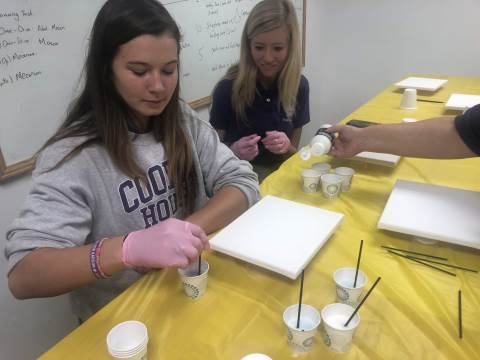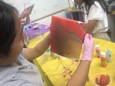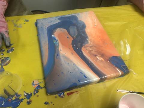 Mrs. Cindy Gordon, strategic initiatives coordinator in Darlington's advancement office, shared her passion for abstract art with my Crafting for Giving iPeriod. We completed pour painting canvases. Enjoy the photos of the process and final products.