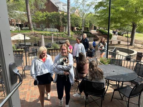 Seniors got to enjoy a much-needed morning of stress relief with Sweet Bar donuts, Swift & Finch coffee, fidget games and puppies from P.A.W.S. in the Upper School Library!