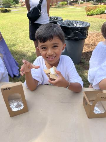 Pre-K enjoyed a great day of "camping" in the classroom followed by a fun picnic with parents, s'mores made in a solar oven and a nature walk around our beautiful campus! It was a fabulous day!