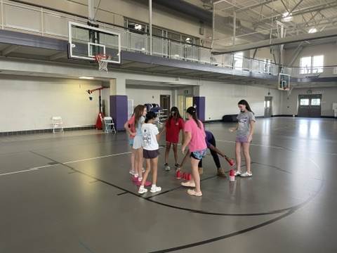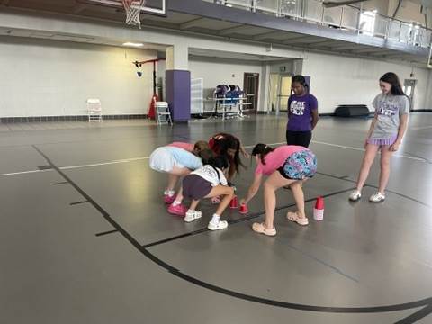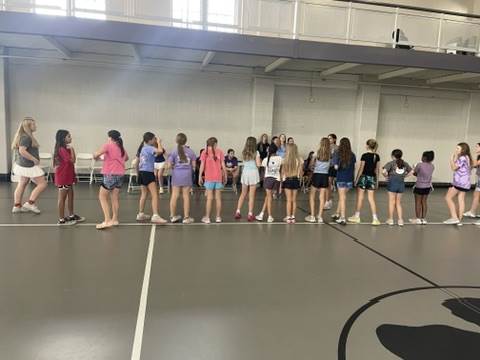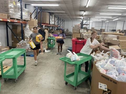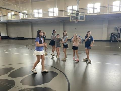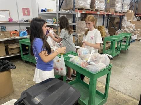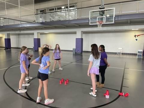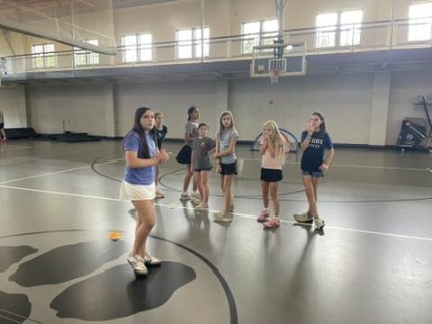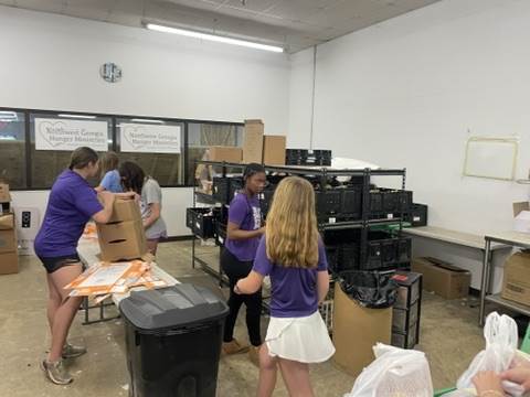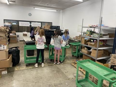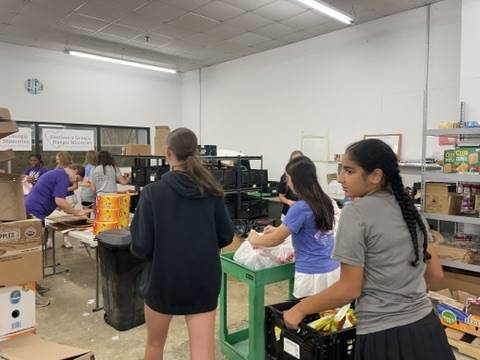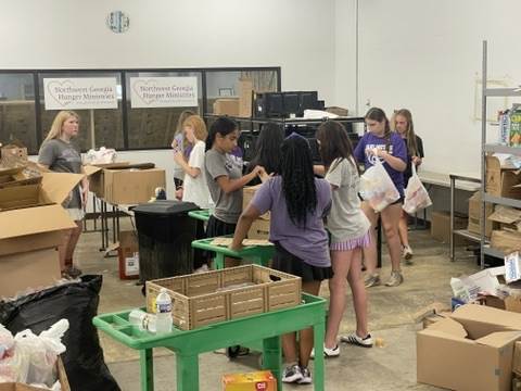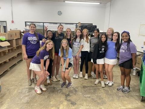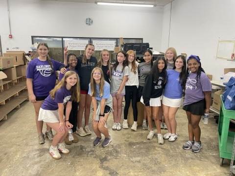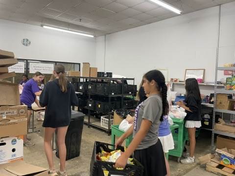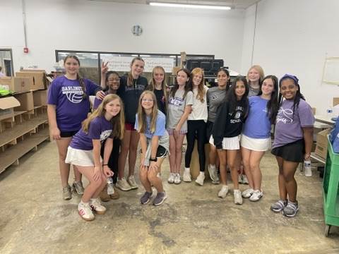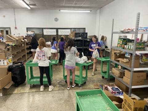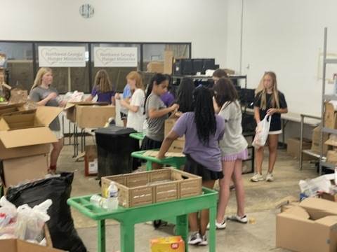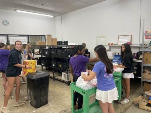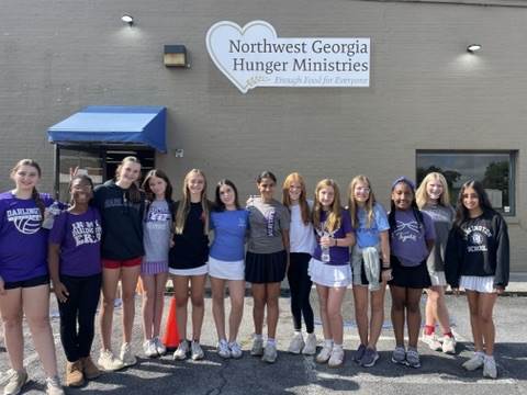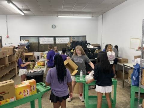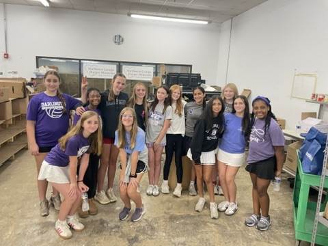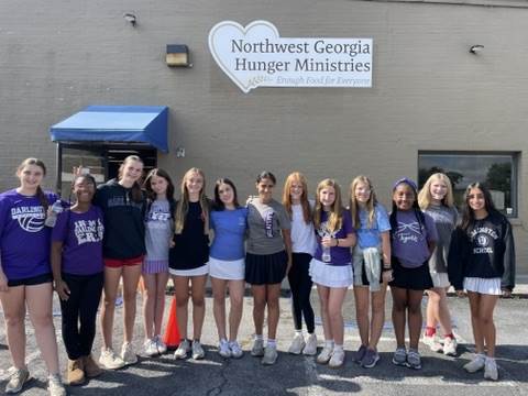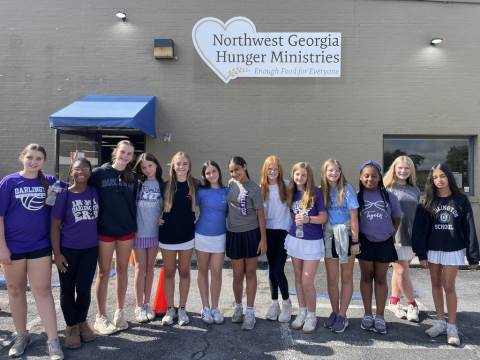 Mrs. Baldwin's seventh-grade advisory girls worked on two service projects on Dot Day. Outside of Darlington, the girls worked at the Northwest Georgia Hunger Ministries food pantry. They packed bags for the Backpack Buddies program, restocked the shelves and counted the number of bags they completed. Back at Darlington, they created a learning experience for the fifth grade girls during their PE time. They came up with a lesson on sportsmanship - learning to win and learning to lose. They also organized different games like birthday lineup, Simon says, trashketball, mousetrap, hangers on a clothesline and more. They finished their activity with a reflection on playing, winning and losing while having fun.