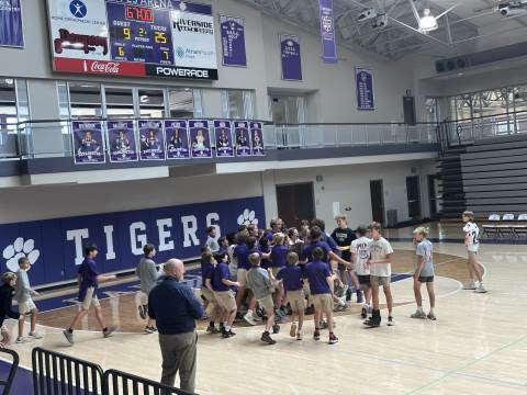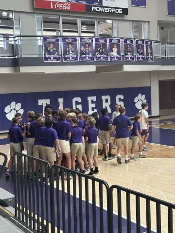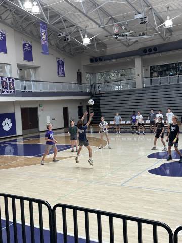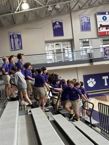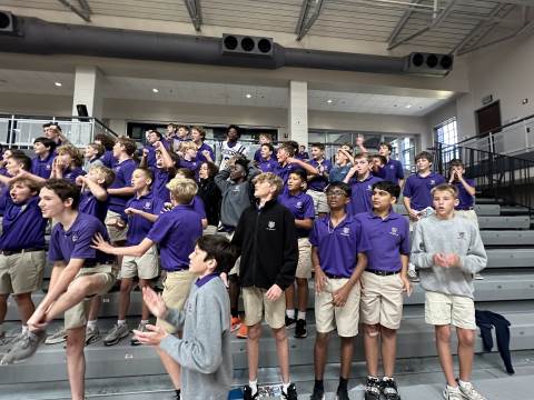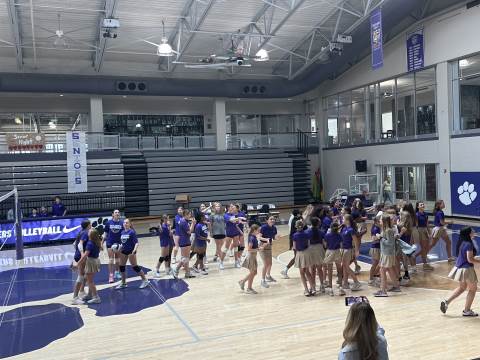 Our eighth-grade boys challenged our middle school varsity girls' volleyball team to a volleyball match during club time. The boys found out why the girls were the FCAA Champions again this year by the girls winning 25-9, 25-9 and 10-3!