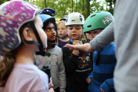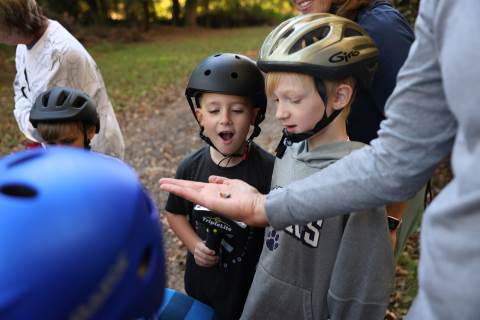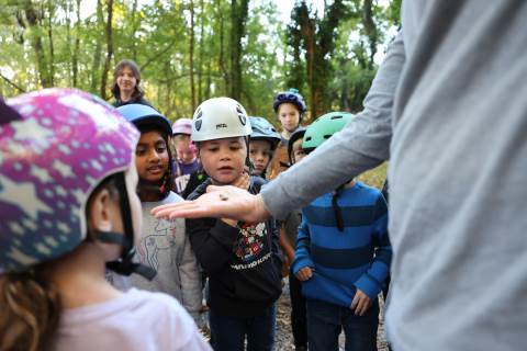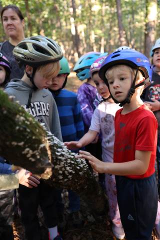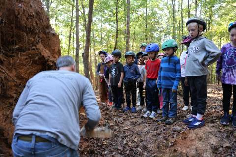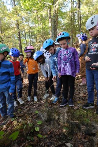 First-graders had the opportunity to visit the bat cave on campus today with the guidance of Upper School science teachers Mr. Kinney and Ms. Haynes. Along the way, they learned all about the ecology on campus.