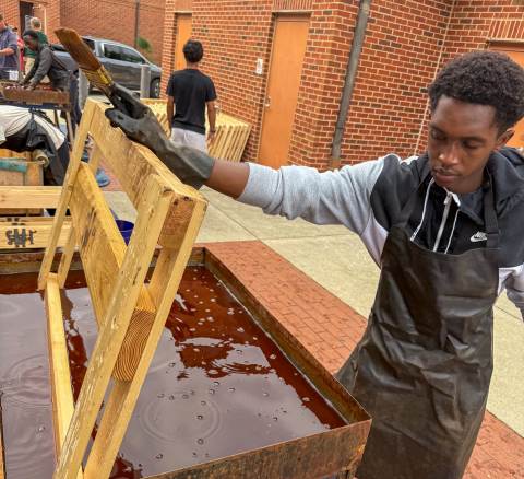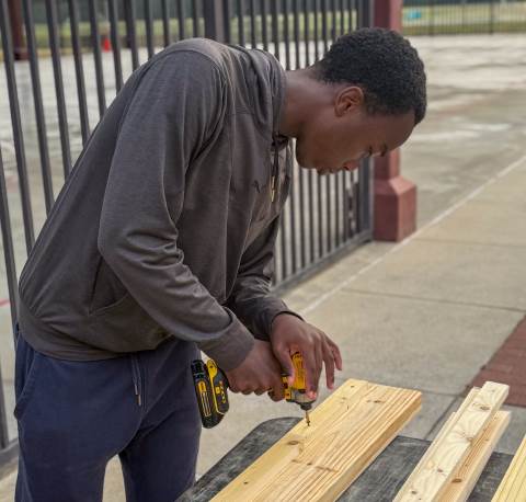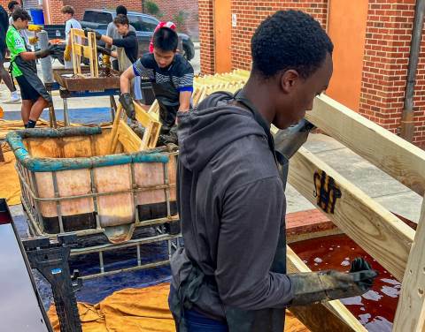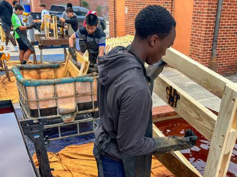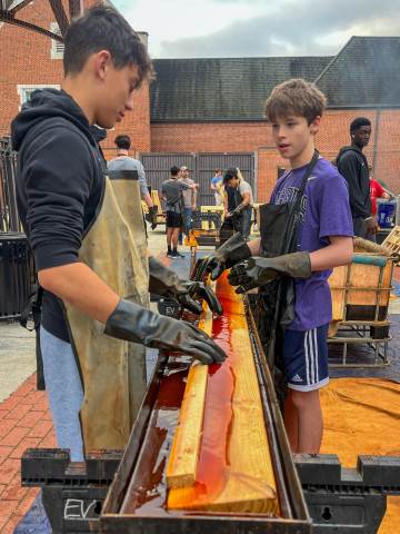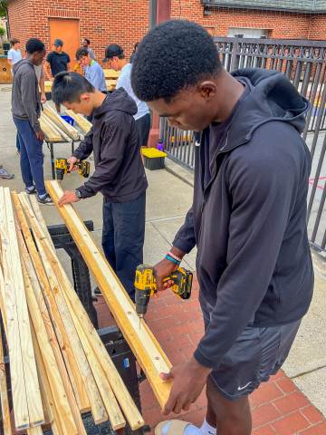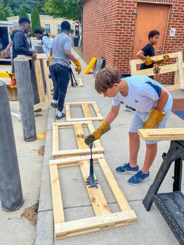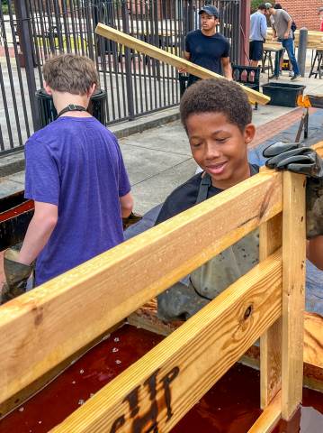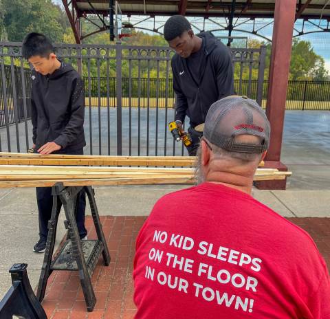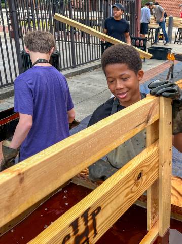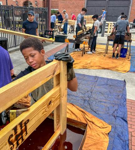 Sleep in Heavenly Peace has a straightforward mission: to ensure that "no kid sleeps on the floor in our town!" On Saturday, Moser House volunteered to support this cause by helping to build, brand and stain wooden beds for local children.