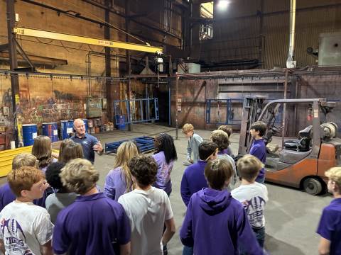Eighth-grade students in Mr. Eberhart’s and Dr. Laliberte’s Money Management Exploratory got the opportunity to see the chain of production in action at Coosa Steel. Thank you to Mr. Saville for hosting us!