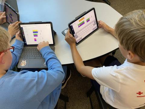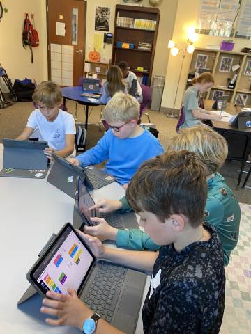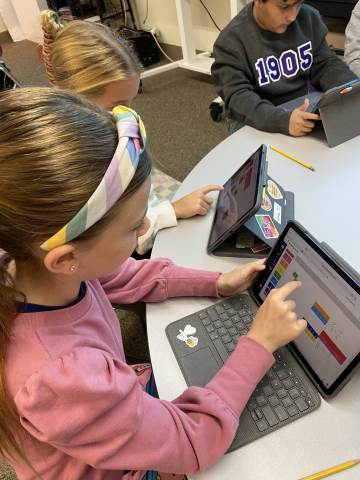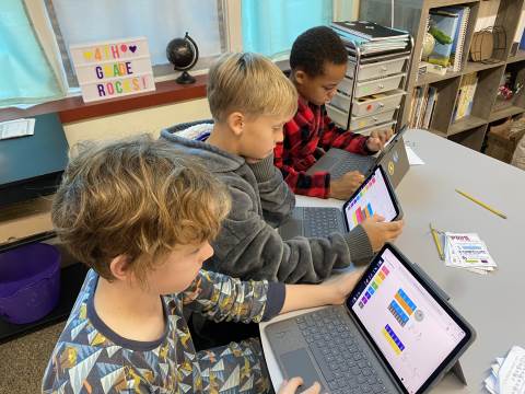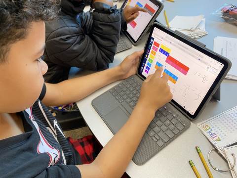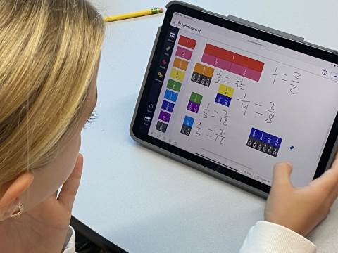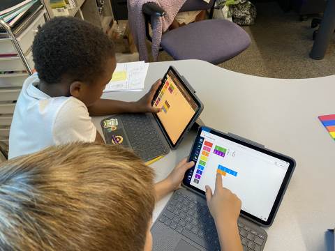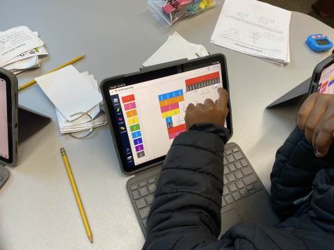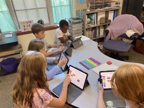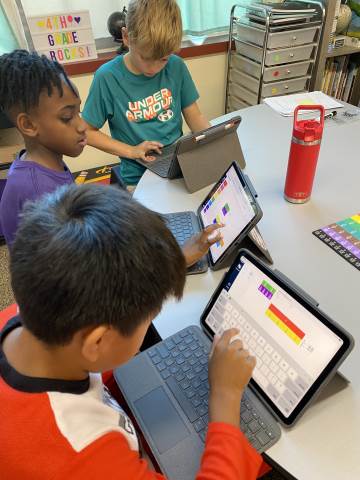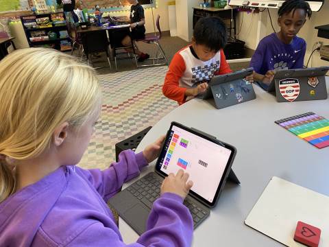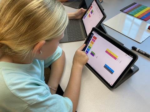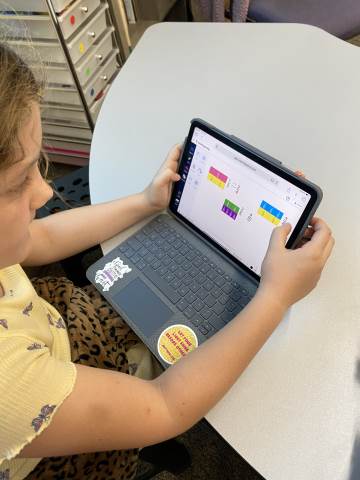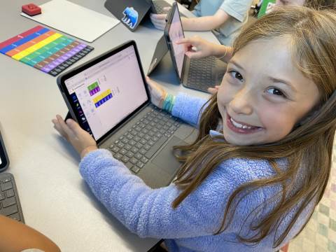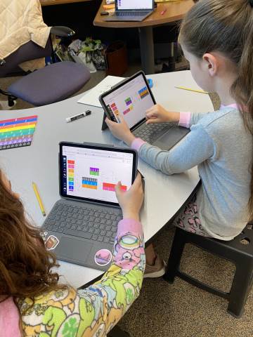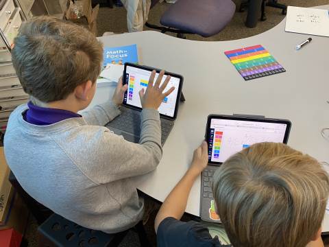 Fourth grade took the opportunity to explore virtual fraction tiles and generate equivalent fractions. Students practiced building, notating, and sharing equivalent fractions and then reflecting on patterns they noticed to see the relationship with numerators and denominators.