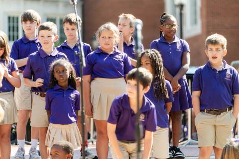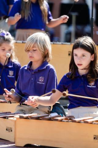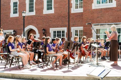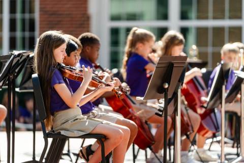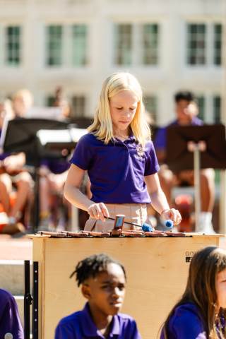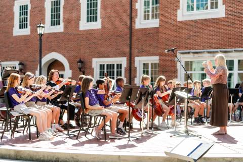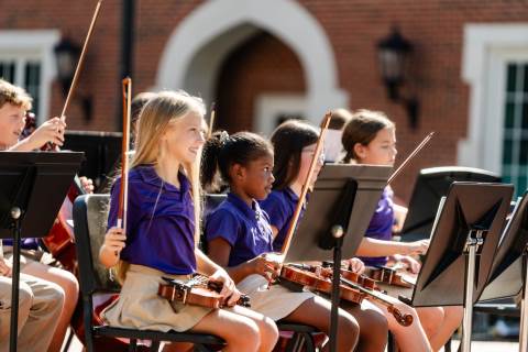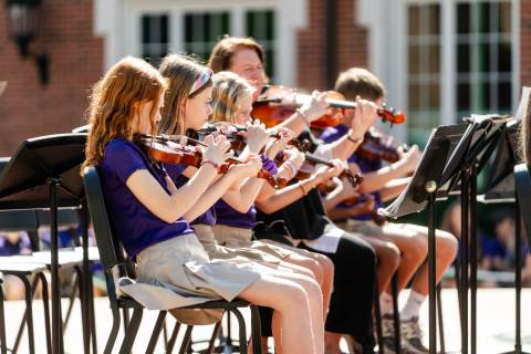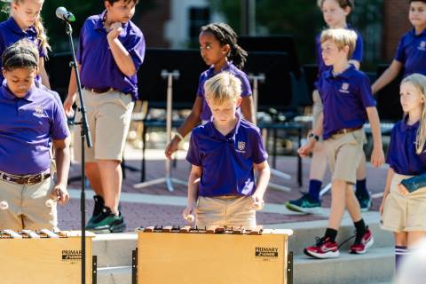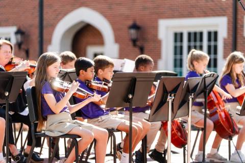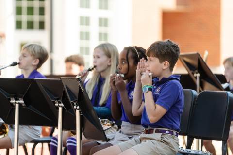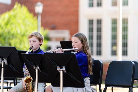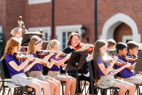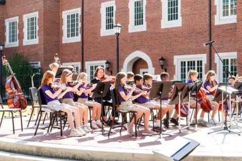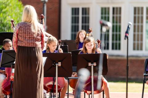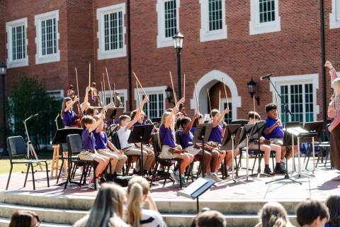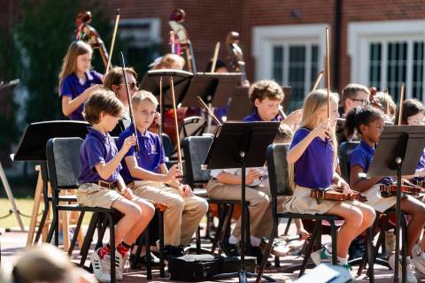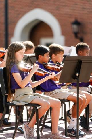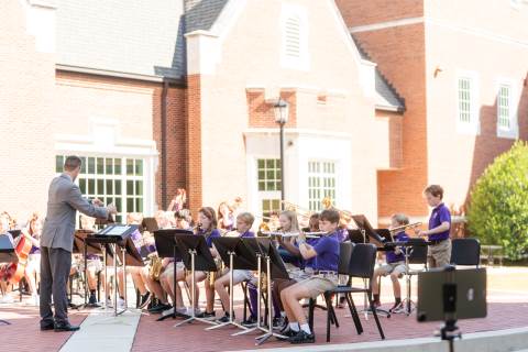 The lower grades band, strings, and general music classes perform their fall concert for friends and family in the Johnson-Drummond Amphitheatre.