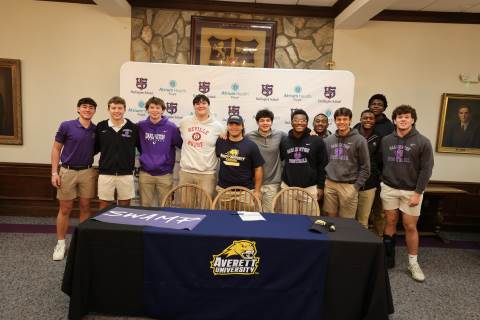 Wyatt Wood ('26) signs his letter of intent to play lacrosse at Averett University.
