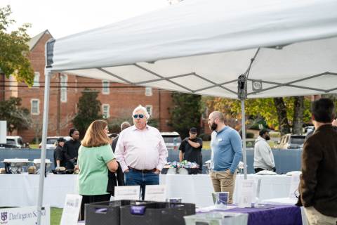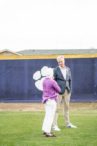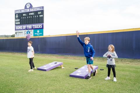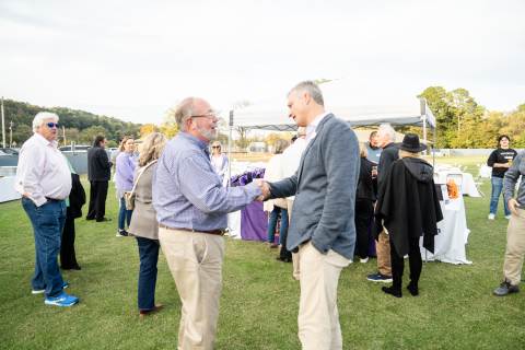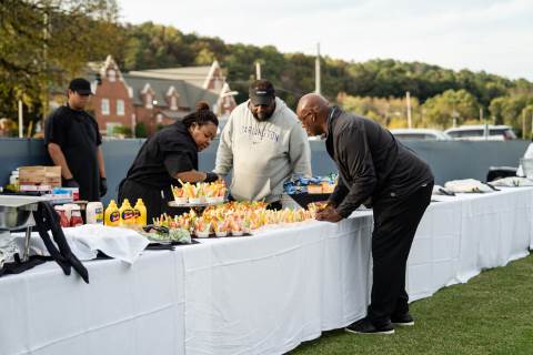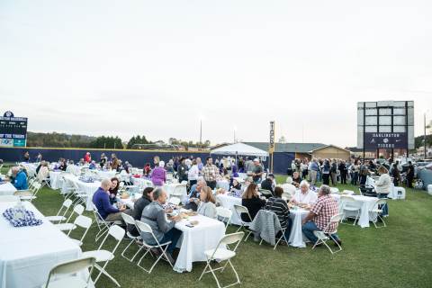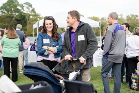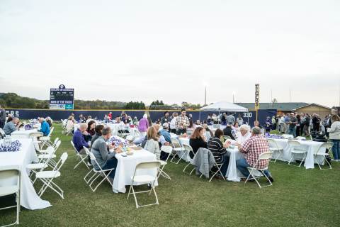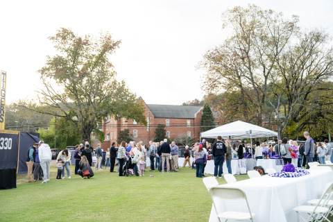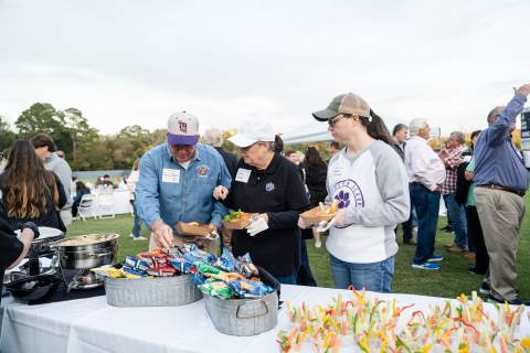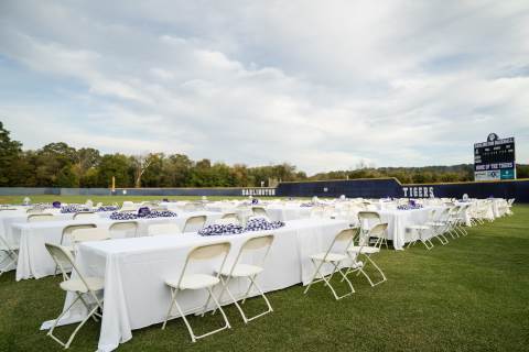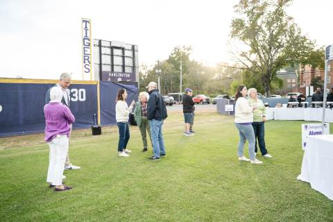Alumni and friends gather at the baseball field for a Tiger Tailgate before the Homecoming football game vs. Temple.