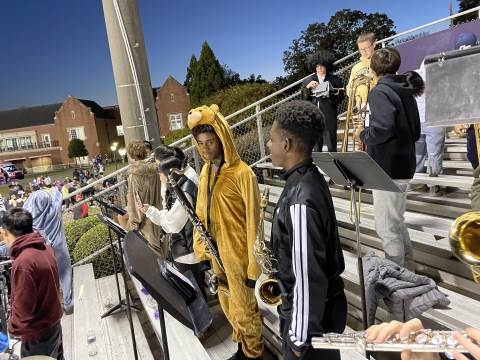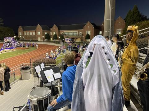 The Stadium Band was so proud to be part of our Senior Night and Halloween at the Chris Hunter Stadium. It is with great honor that we recognized two band members who have made it to senior year while participating in our stadium activities: Ray Chen and Nancy Zhang! These two have been important members who have consistently set the example of excellence in their diligent work in the band. The band also enjoyed the Halloween theme for the evening. Our Stadium Band played well at both the pep rally and our fourth home game. They have gone above and beyond this fall season!