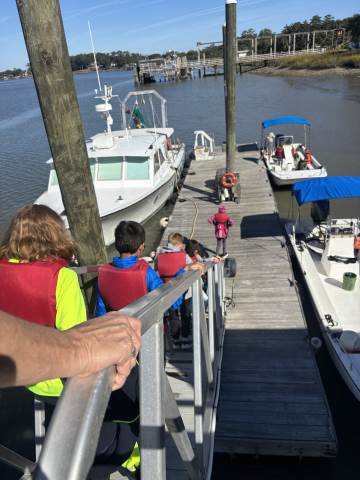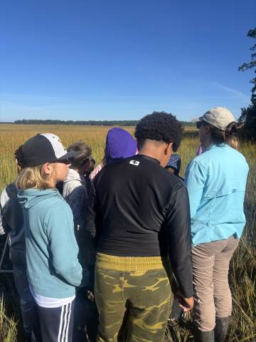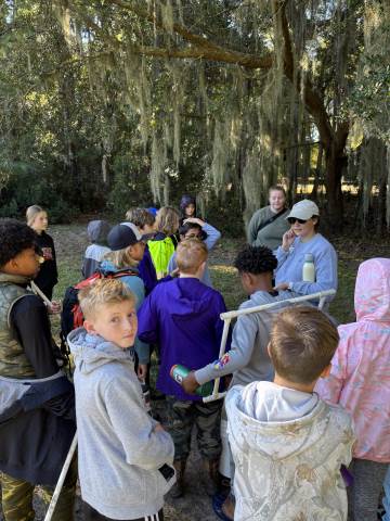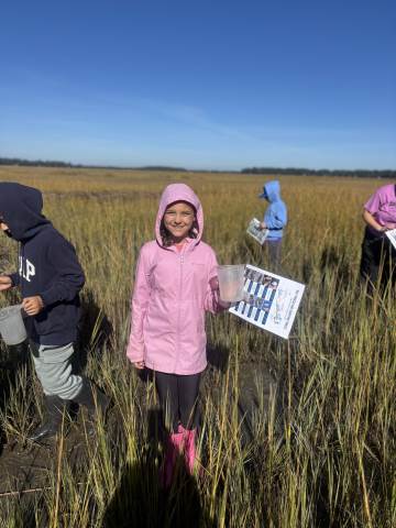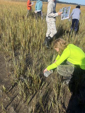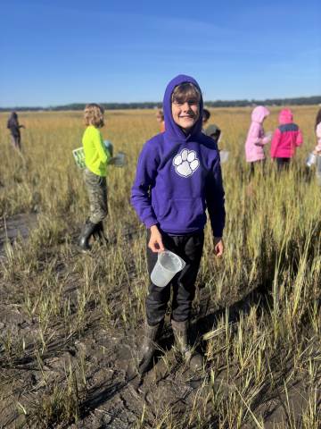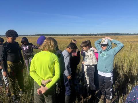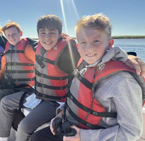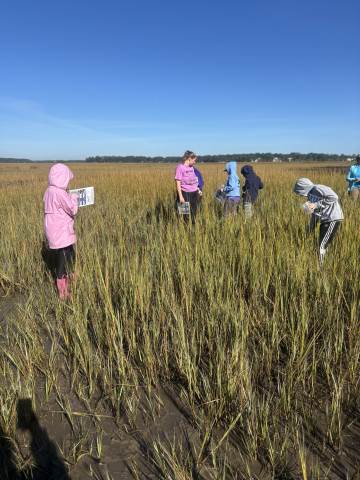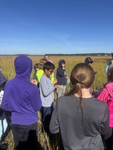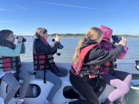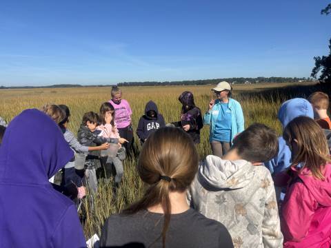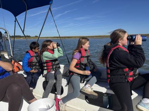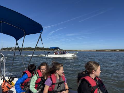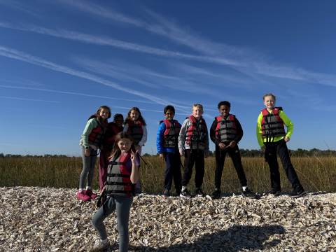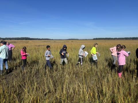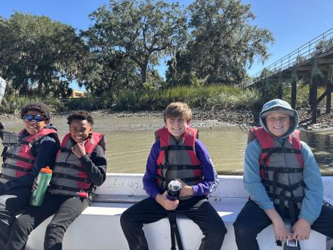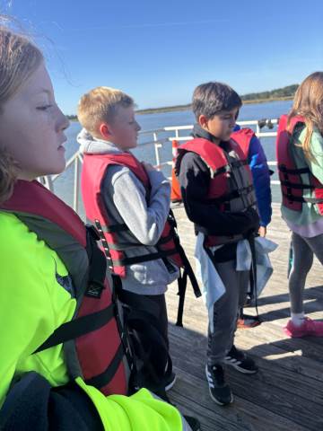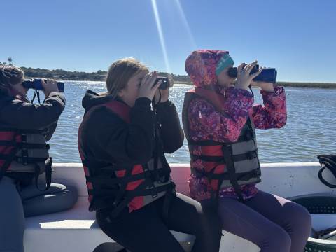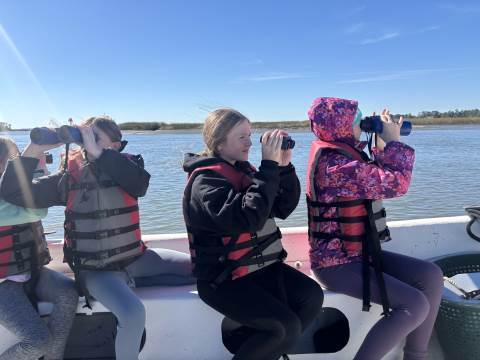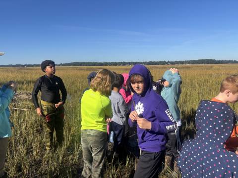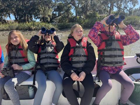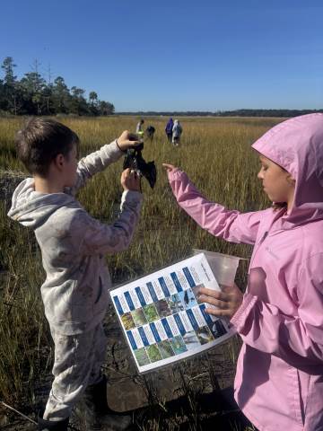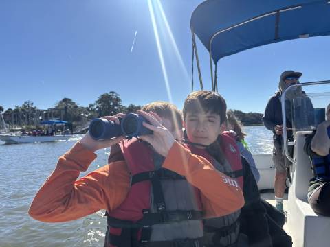 Fifth-graders in Group B had a blast on day two at Skidaway Island! They spent time exploring the marsh searching for shells, creatures and other objects and searching for dolphins on the boat tour.