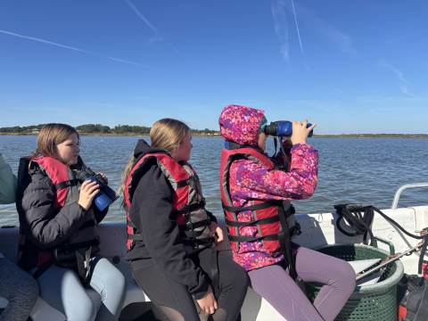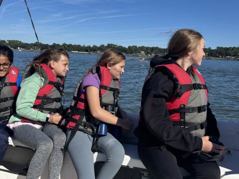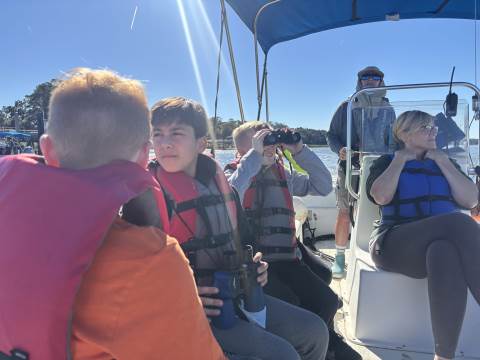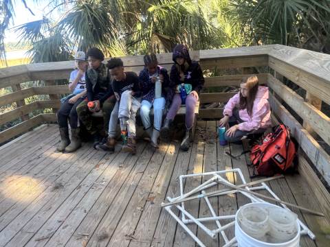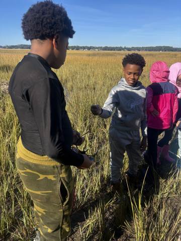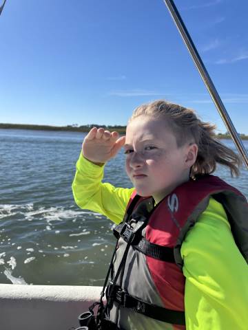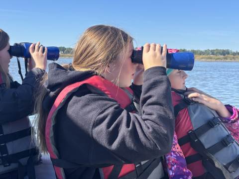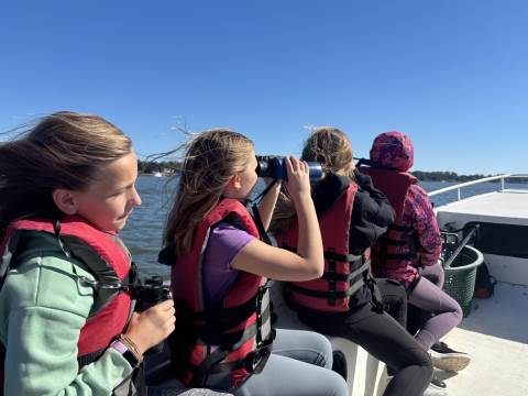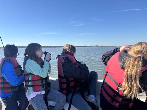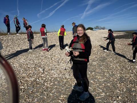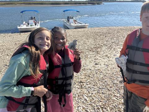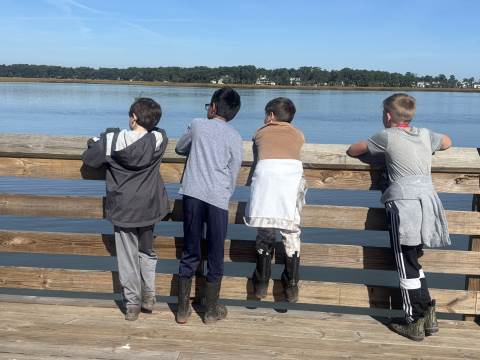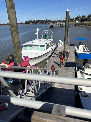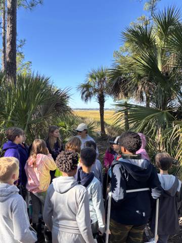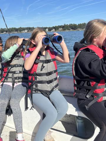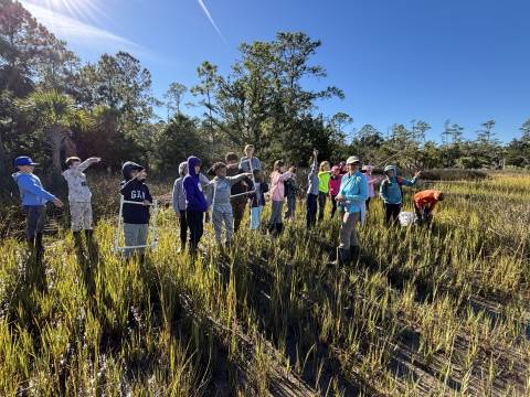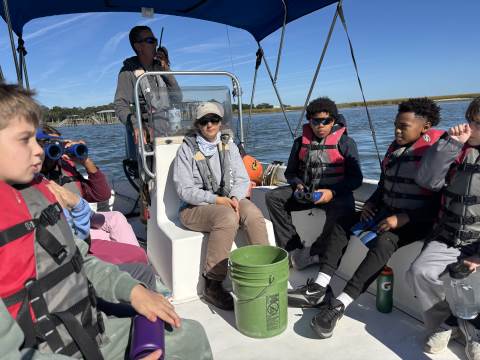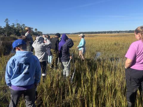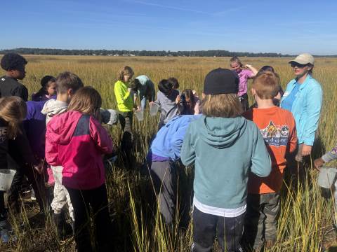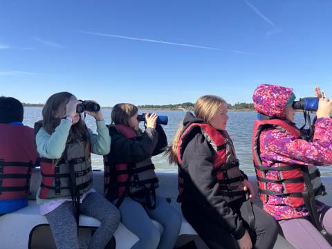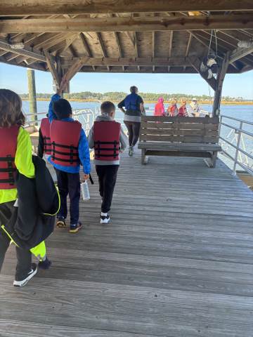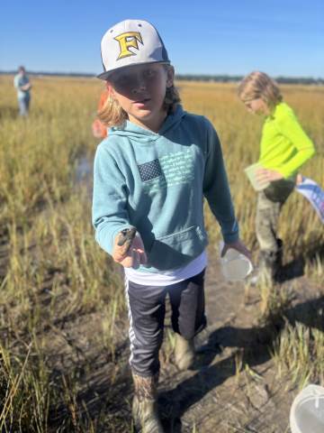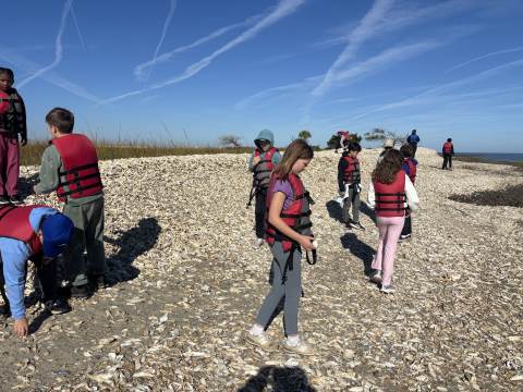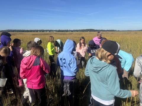 Fifth-graders in Group B had a blast on day two at Skidaway Island! They spent time exploring the marsh searching for shells, creatures and other objects and searching for dolphins on the boat tour.