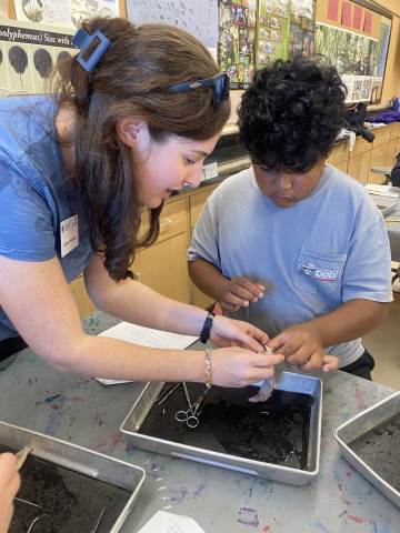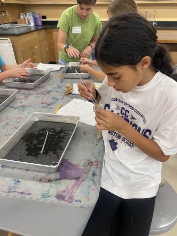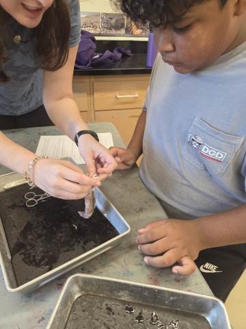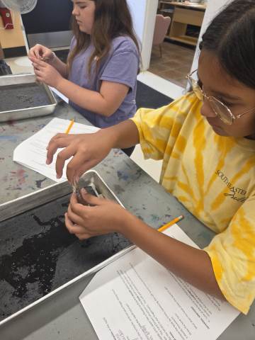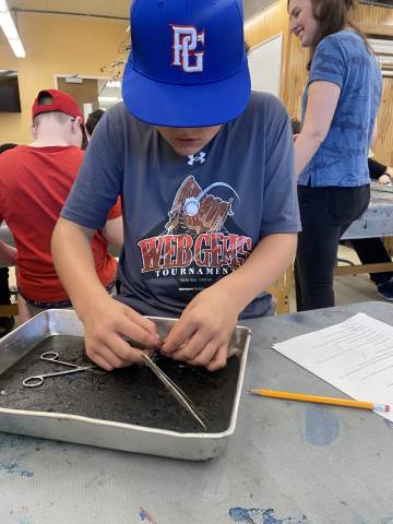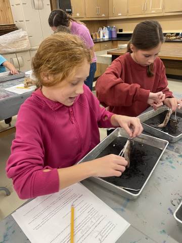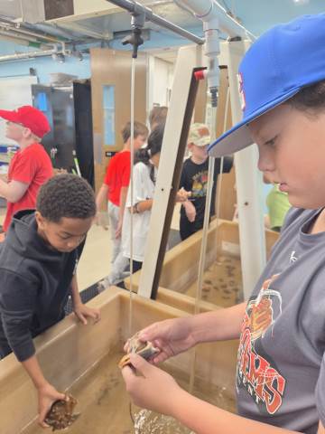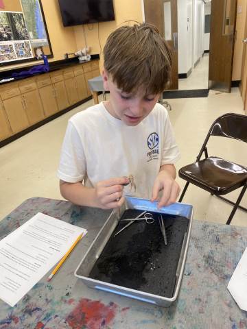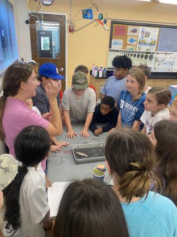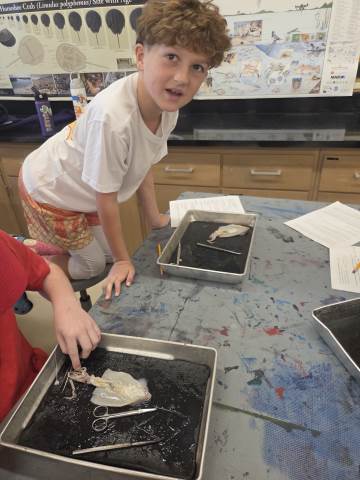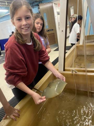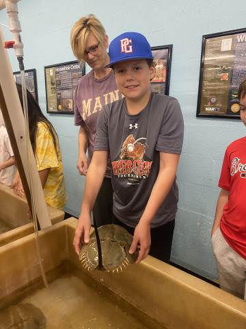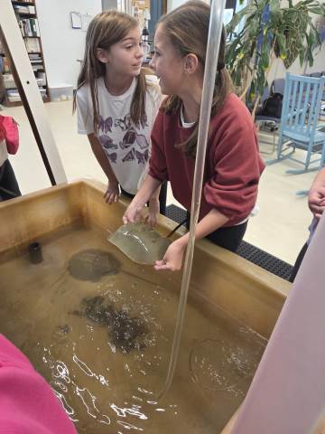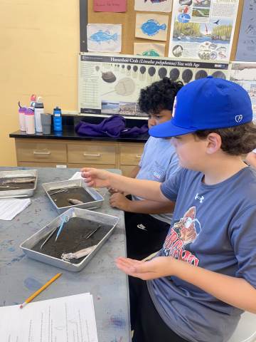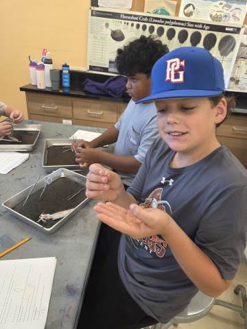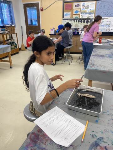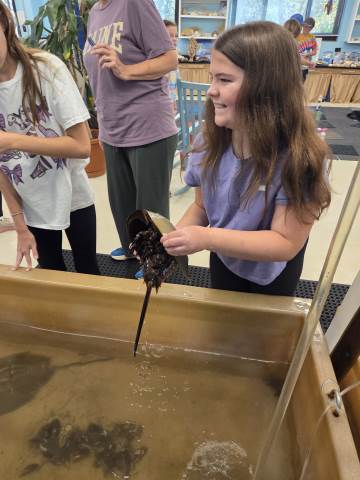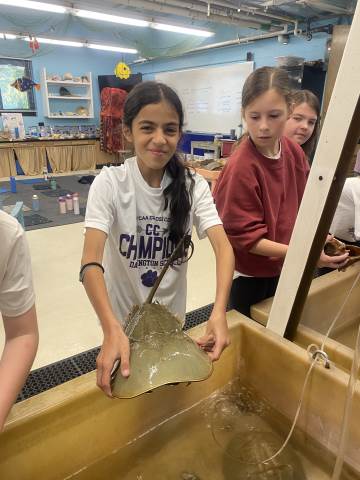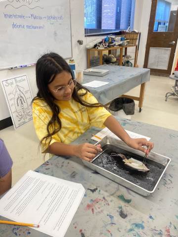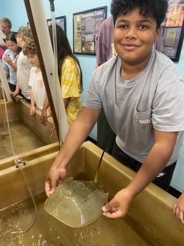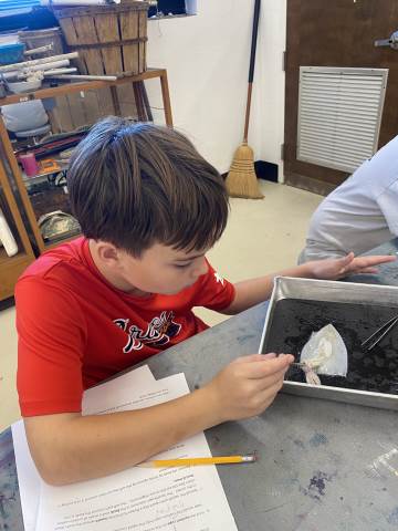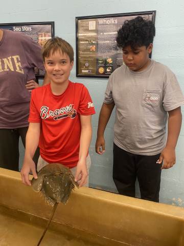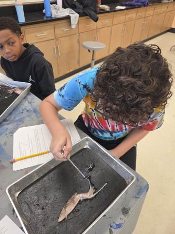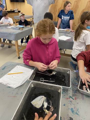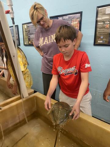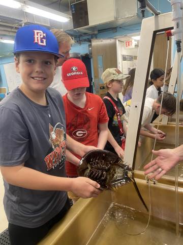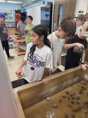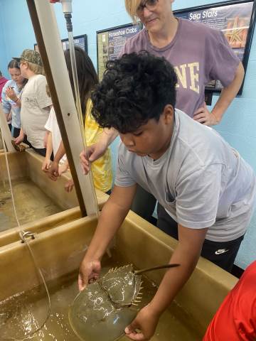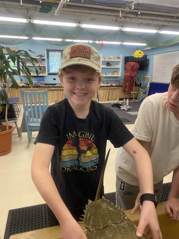 On day three in Skidaway Island, Group A had a great time in the touch tank exploring with their hands. Students were able to hold sea spiders, conk shells, and horseshoe crabs. The morning was finished by dissecting a squid and completing a lab sheet on all of its interesting body parts. For a half a day, lots of fun and learning was had by all the students.