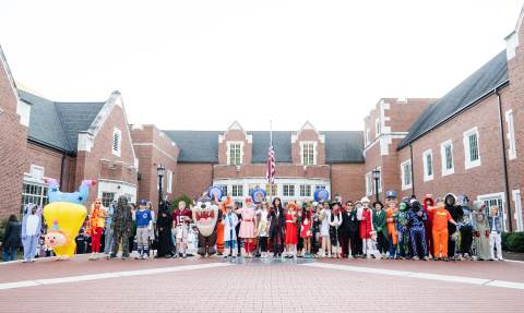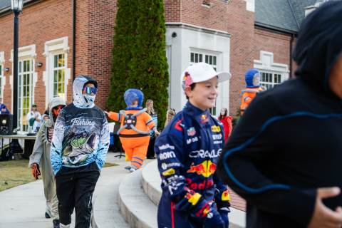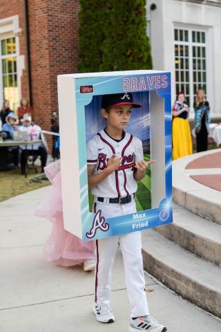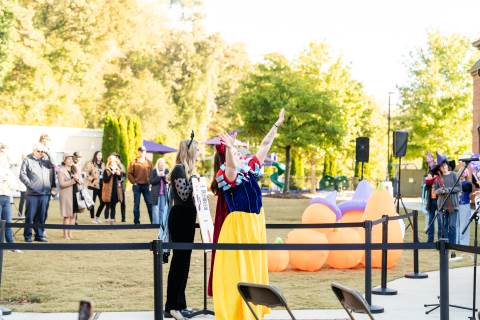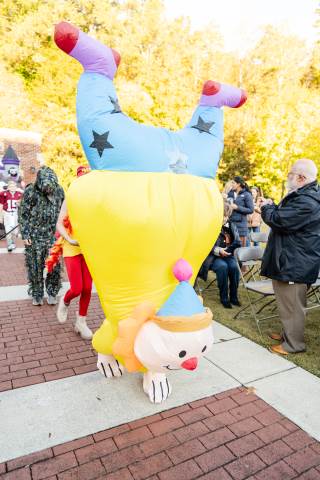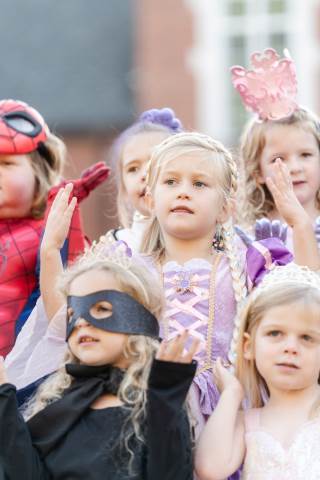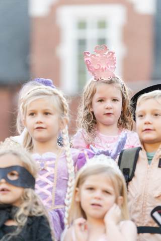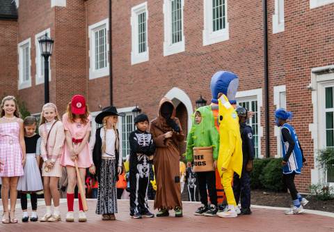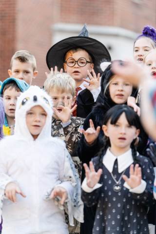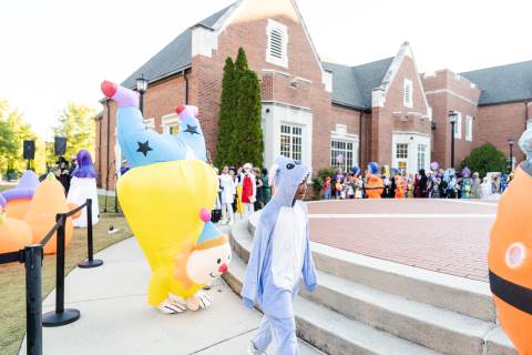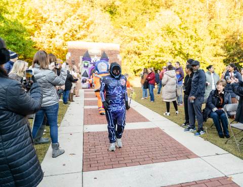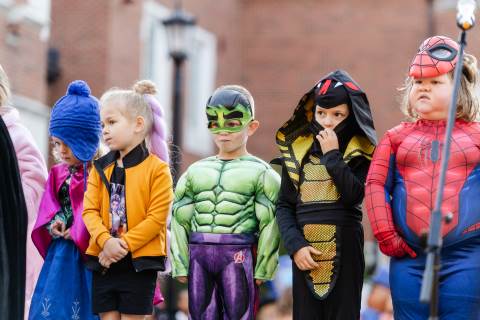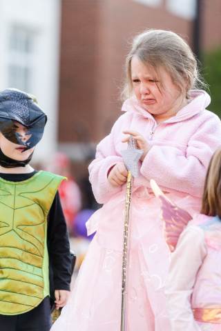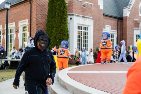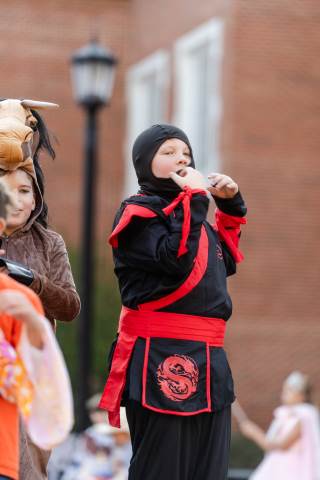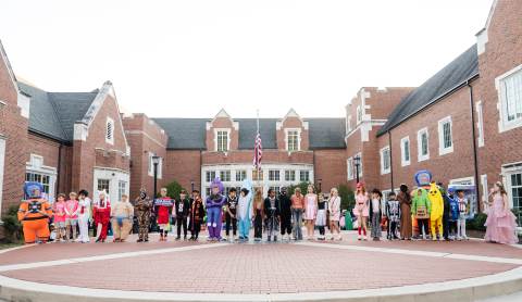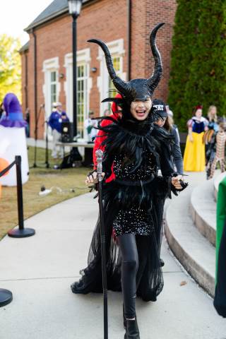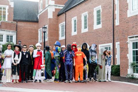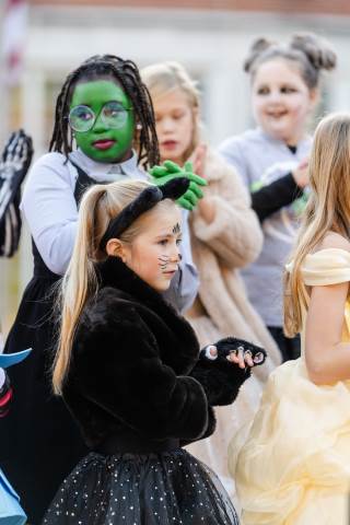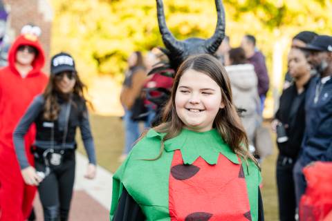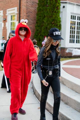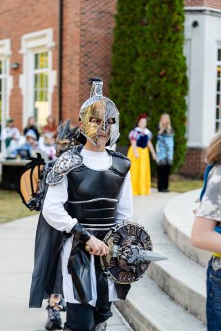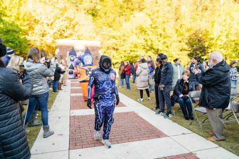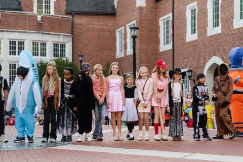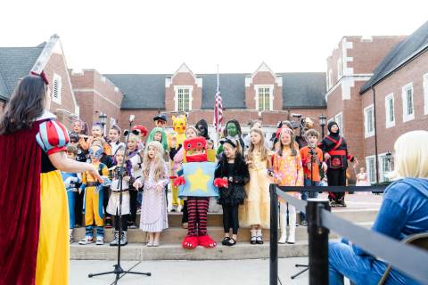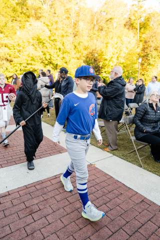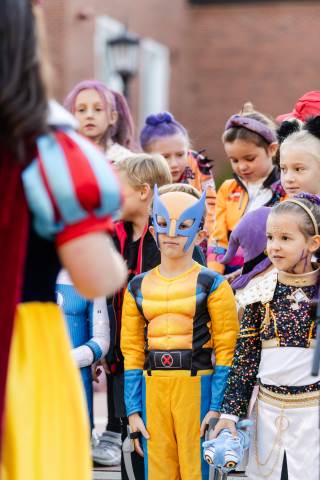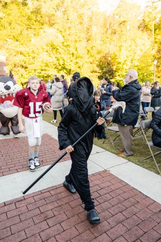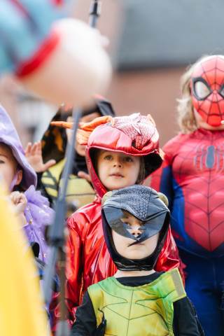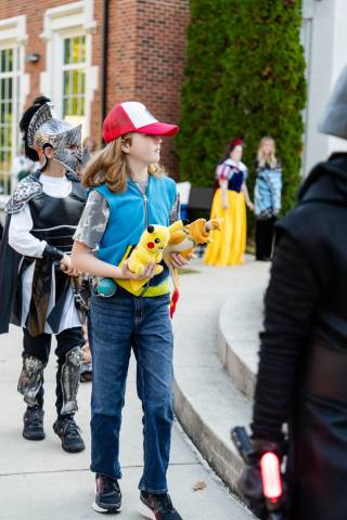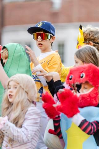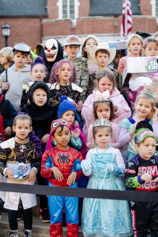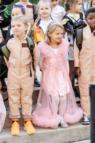 Students in grades pre-K to 5 show off their Halloween costumes at the annual parade before advisory groups representing grades 6-8 perform their skits for parents and special guests.