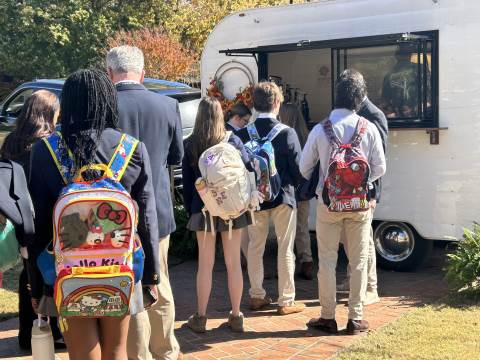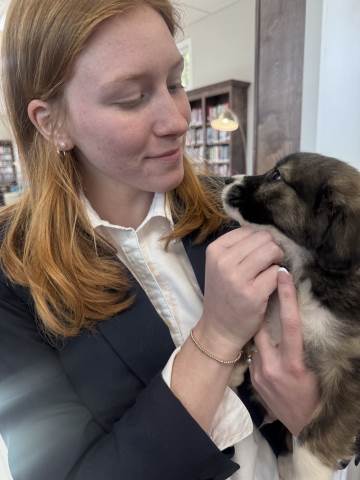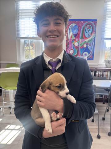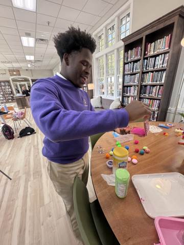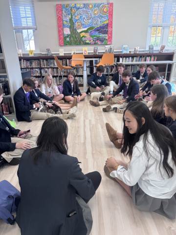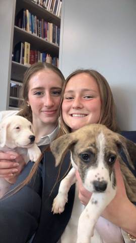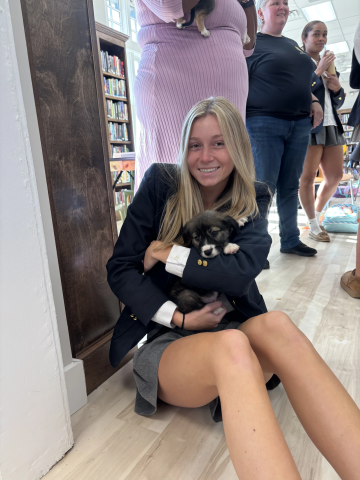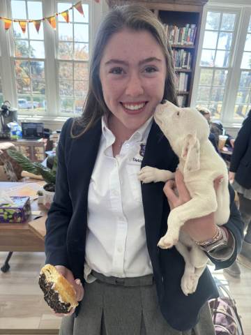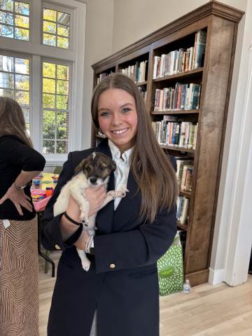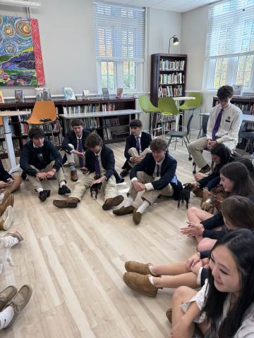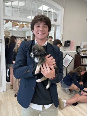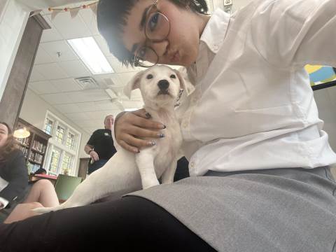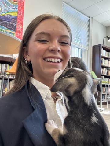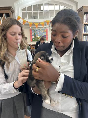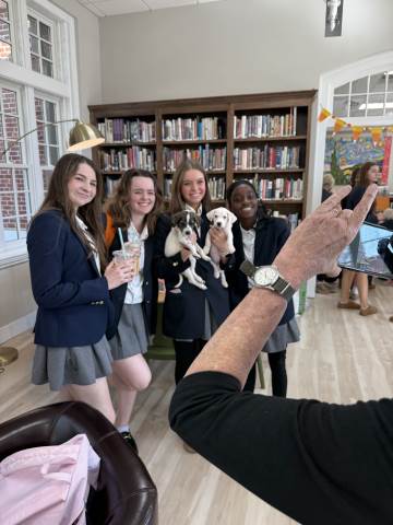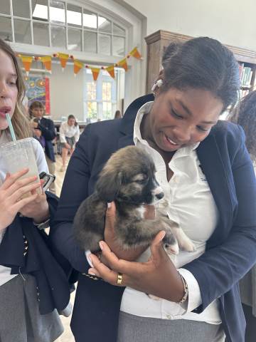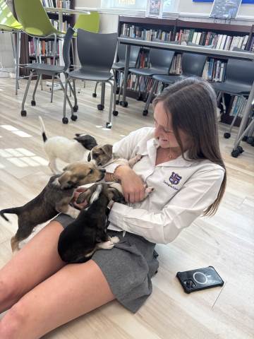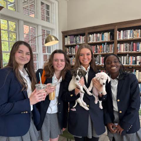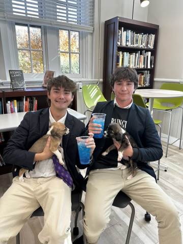 The Upper School Library invited the senior class to Senior Stress Relief, a special afternoon in the library designed just for them. Students got to play with adoptable puppies from the local animal shelter (P.A.W.S.); grab a coffee, matcha, or refresher from Revive Coffee & More's mobile coffee shop; enjoy a variety of sweet treats from The Sweet Bar; and participate in some stress-relieving activities like coloring and playing with fidget toys. Senior Stress Relief is one of the seniors' favorite events of the year!
