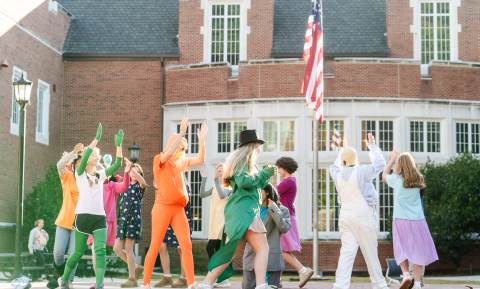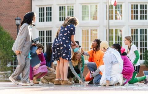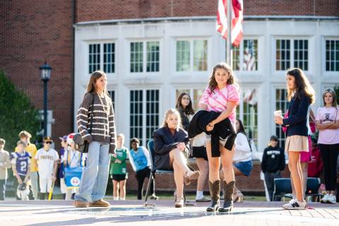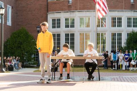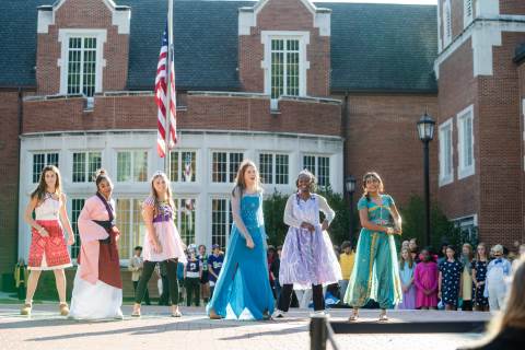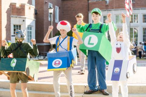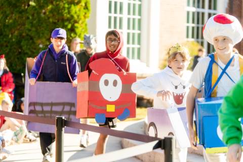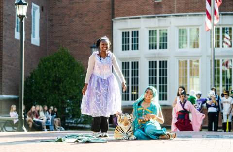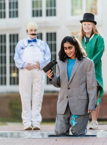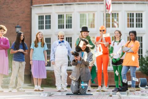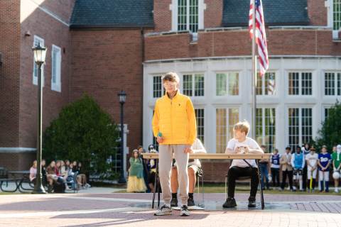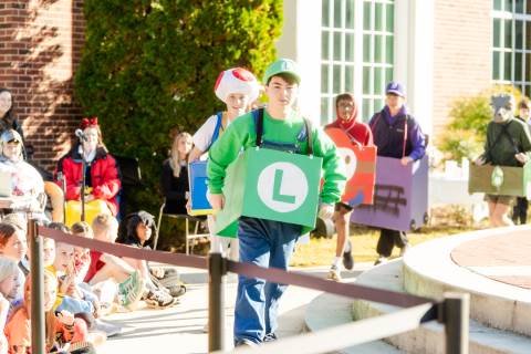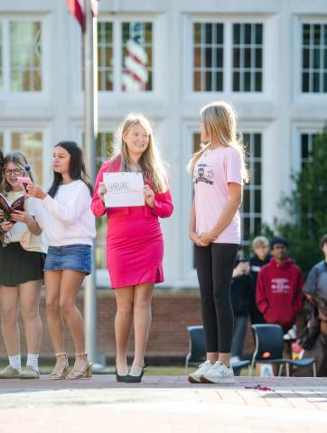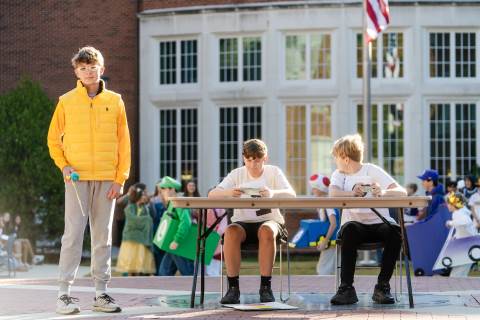 Middle grades advisory groups perform their Halloween skits for family and friends at the Thatcher Halloween celebration.