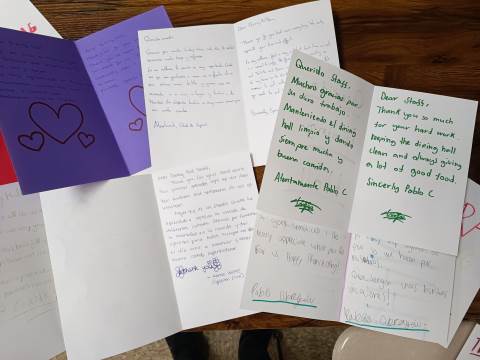 Students from the Spanish Club iPeriod wrote bilingual thank you letters to express appreciation to the wonderful staff in our dining hall. The goal of this activity was to build a meaningful cultural and linguistic connection, allowing students to use Spanish in a real, authentic context while showing gratitude to members of our school community. Students wrote their messages in both English and Spanish, practicing language skills, cultural awareness, and empathy.