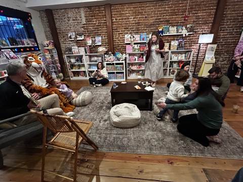 The Advancement Office hosted a Darlington Tiny Tigers Storytime at River & Hill Books in Downtown Rome. Guests enjoyed storytime with Head of School Brent Bell, visited with the Darlington Tiger, and connected with fellow Darlington alumni, parents, and grandparents. Thank you to current parent and alumna Claire McWhorter (’08, LD ’15), owner of River & Hill Books, for hosting us!