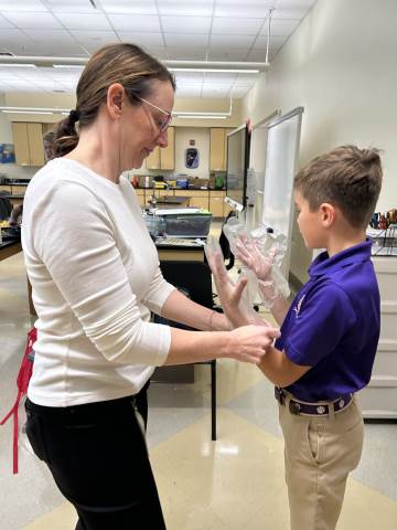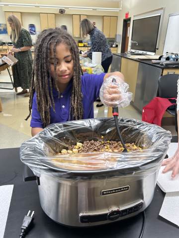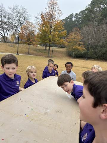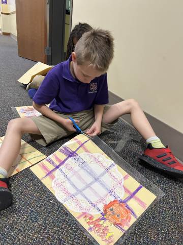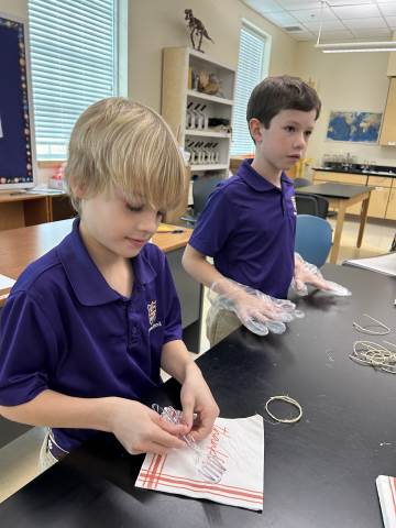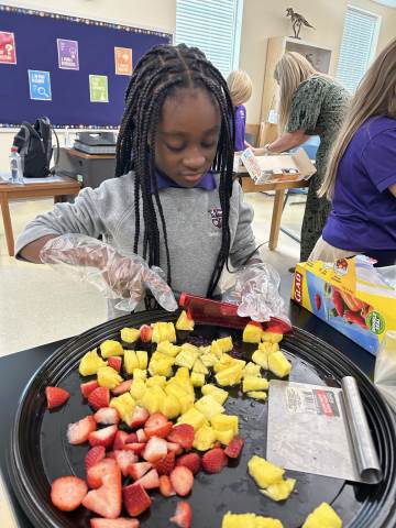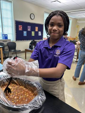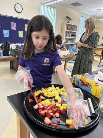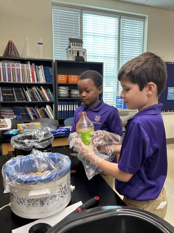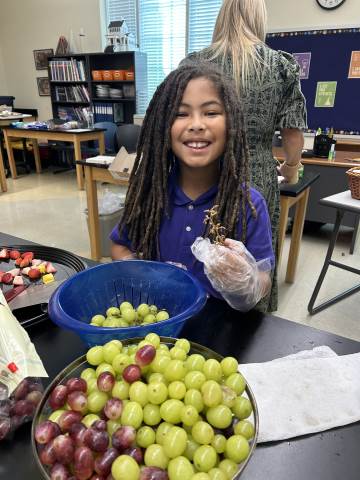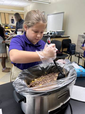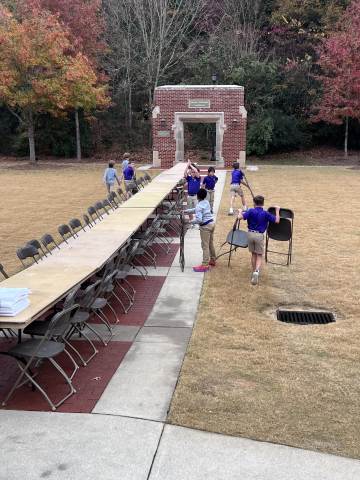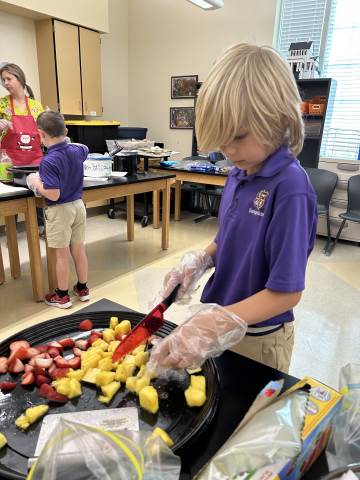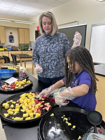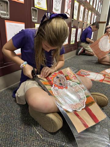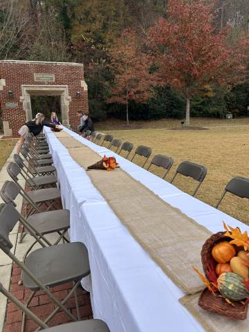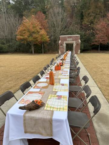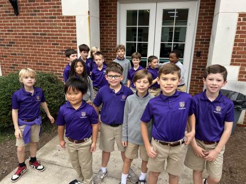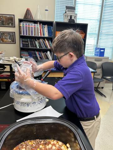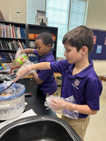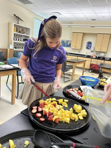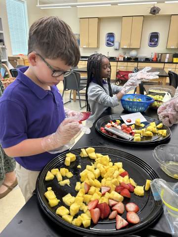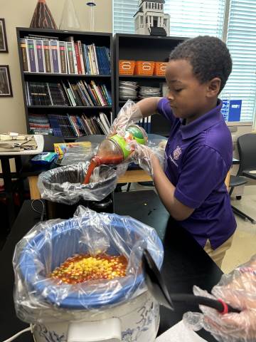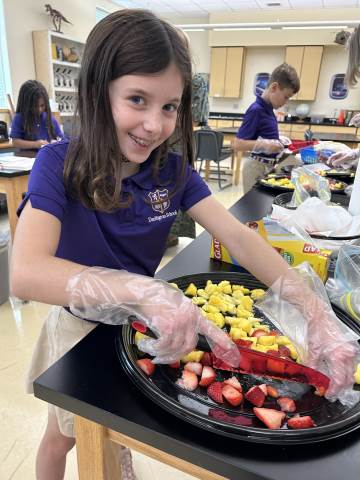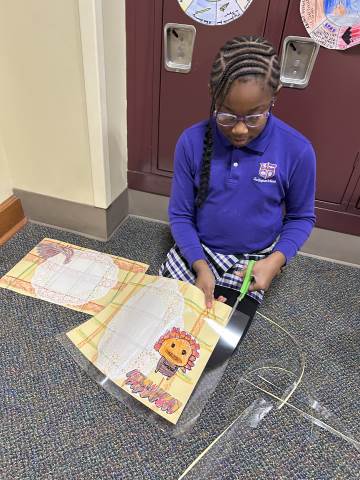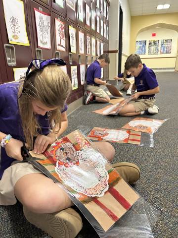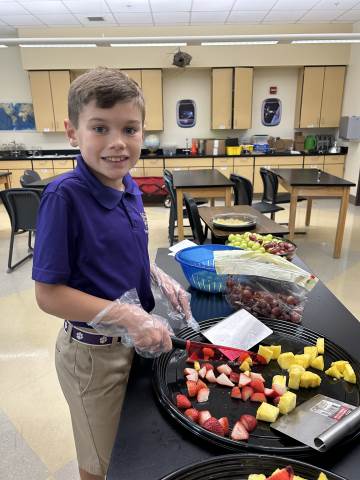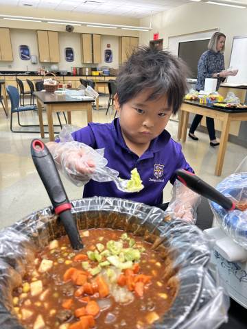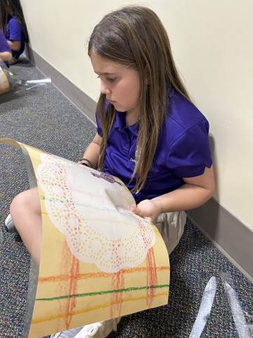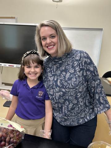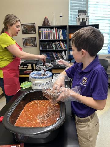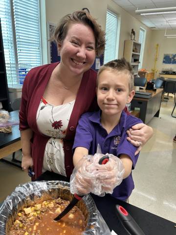 Third-graders worked with several supportive parents to prepare for our annual Friendship Feast. Several crockpots of "friendship stew" were assembled, fruit was chopped for fruit salad, placemats were trimmed, and utensils were rolled and tied. On the morning of the feast we set up tables and chairs, put out tablecloths, and decorated the tables with placemats.