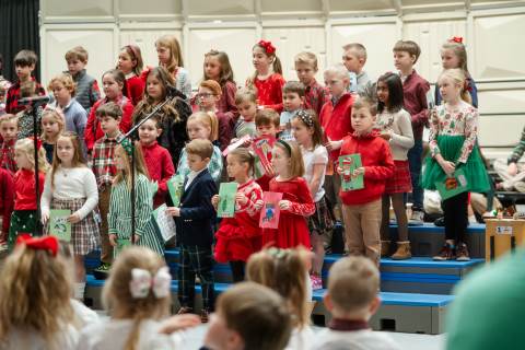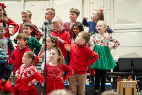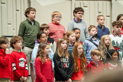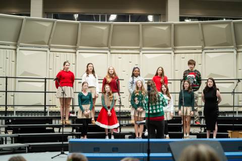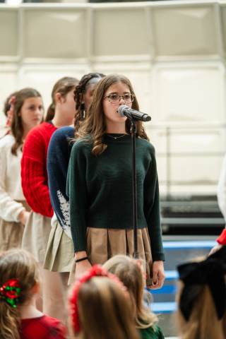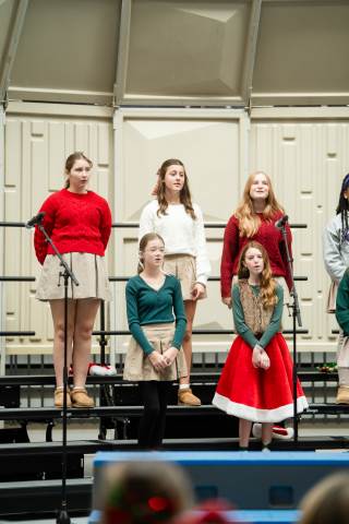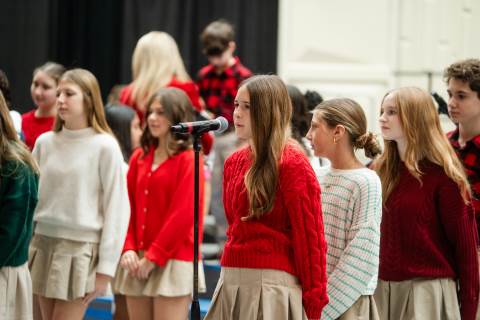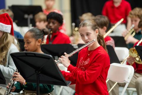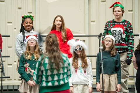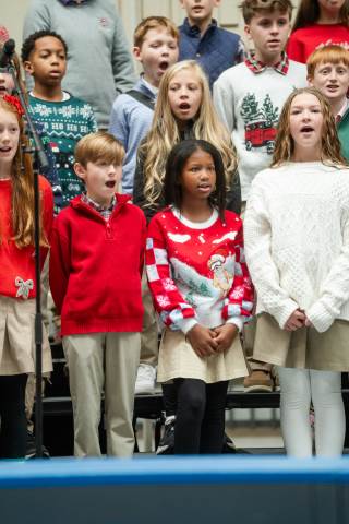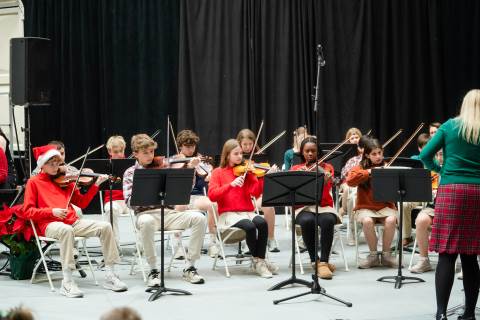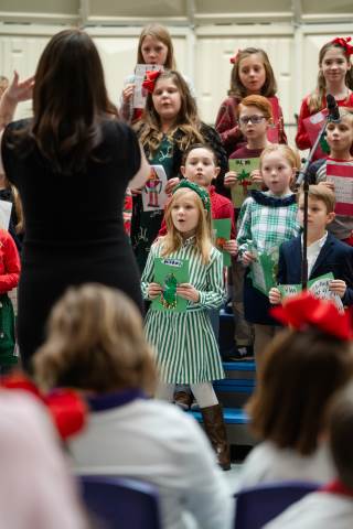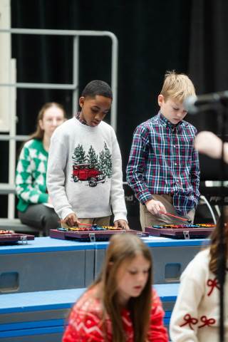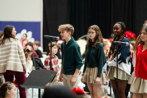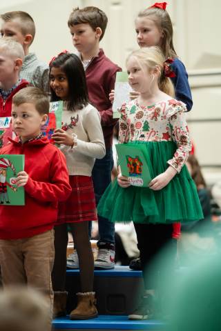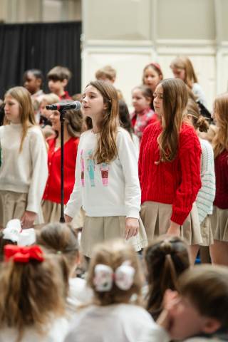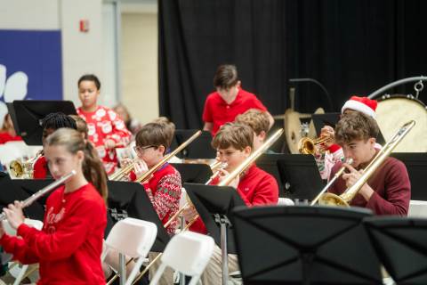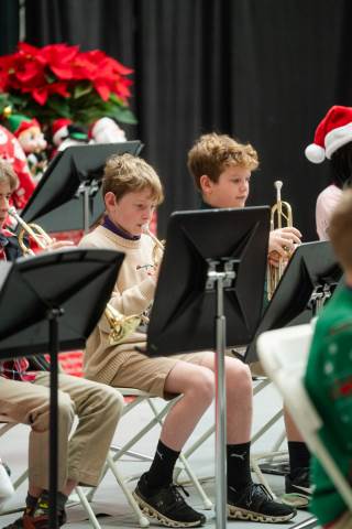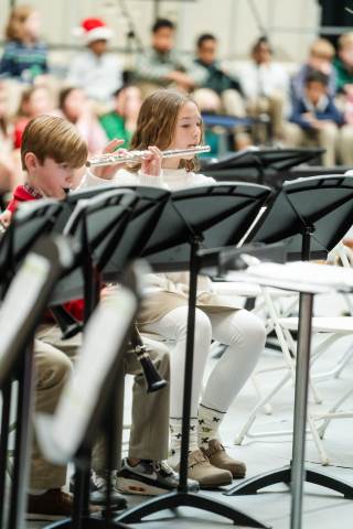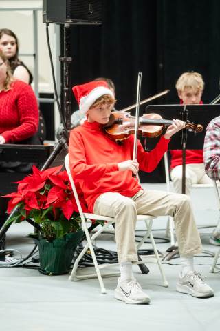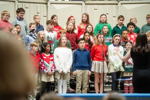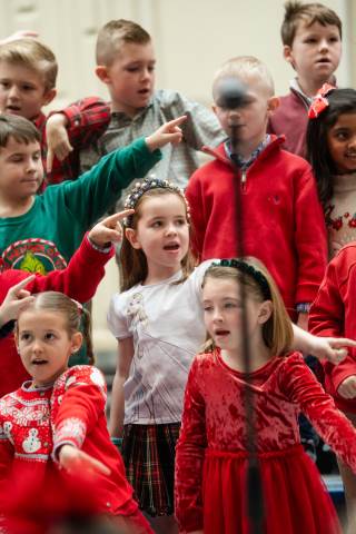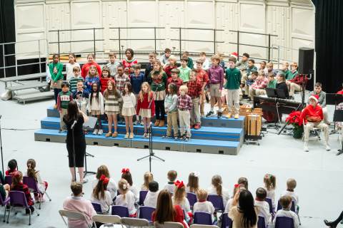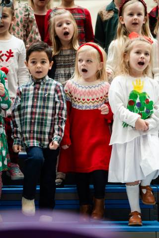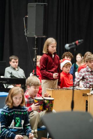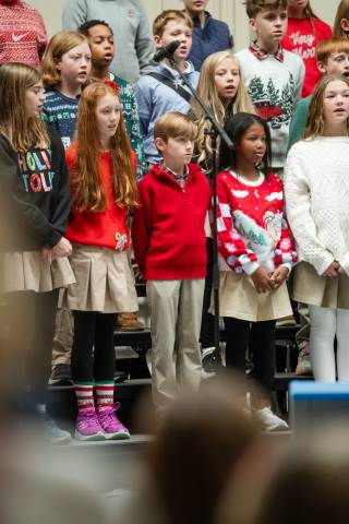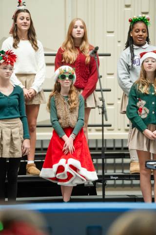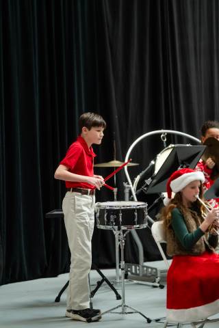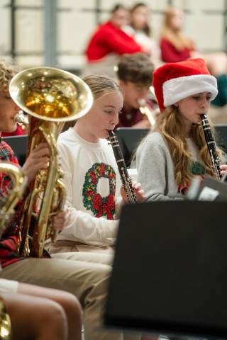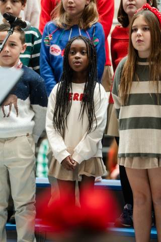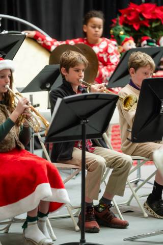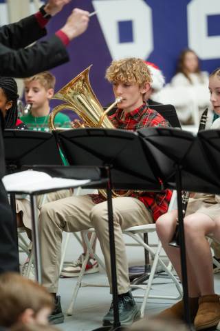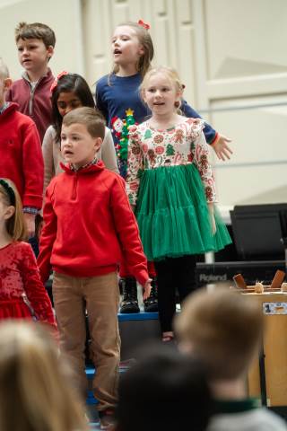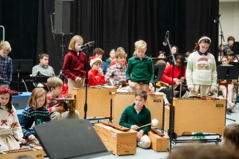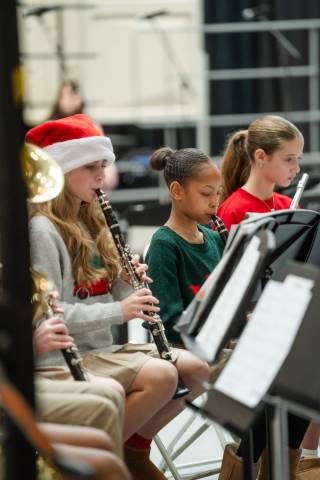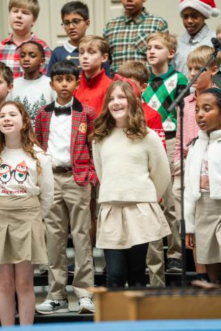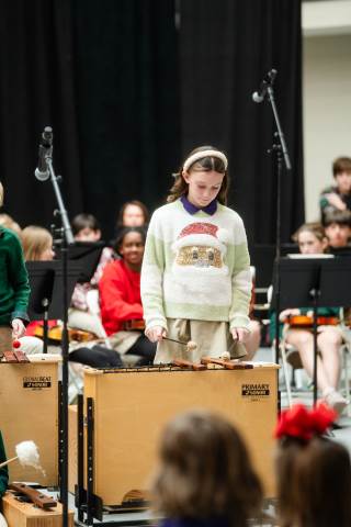 Pre-K to 8 students in Chorus, General Music, Band, Orchestra, Strings and Drama perform Christmas pieces for friends and family at the annual Pre-K to 8 Holiday Festival.