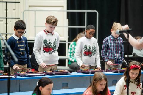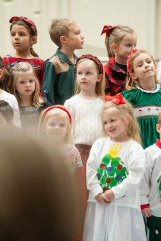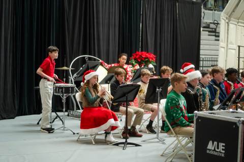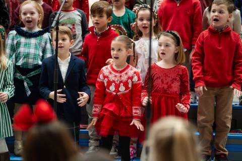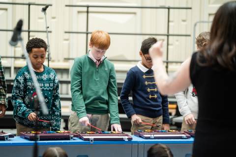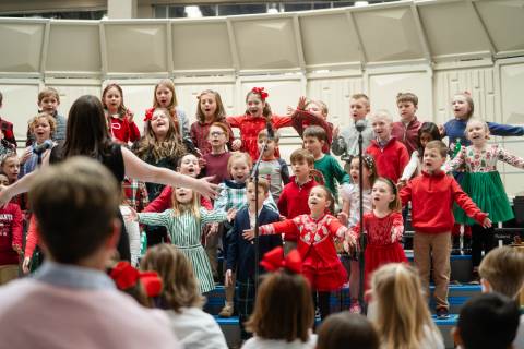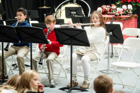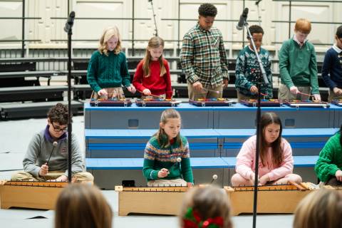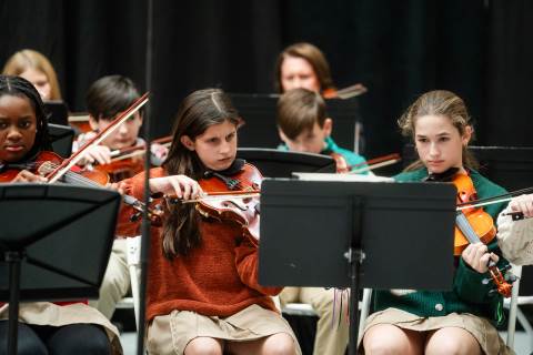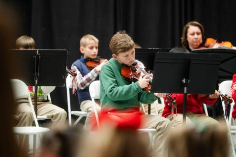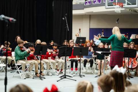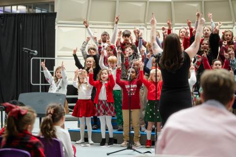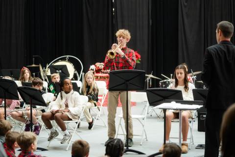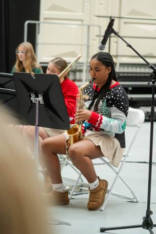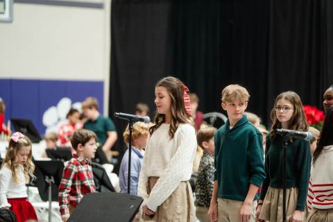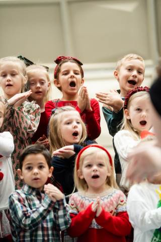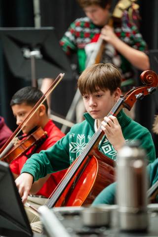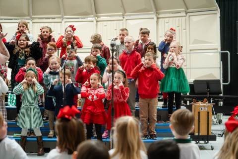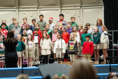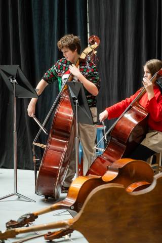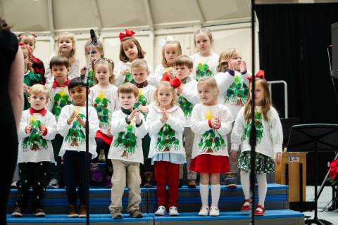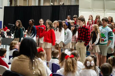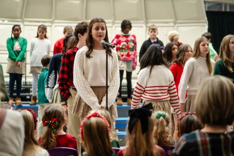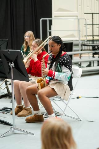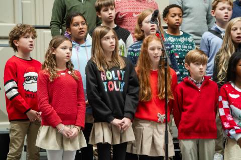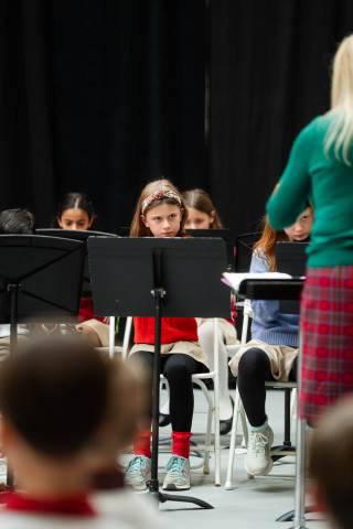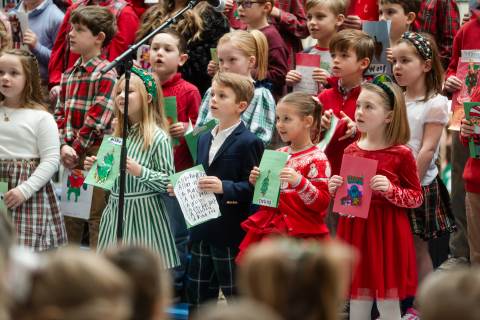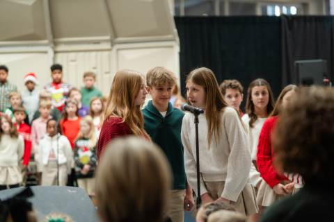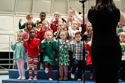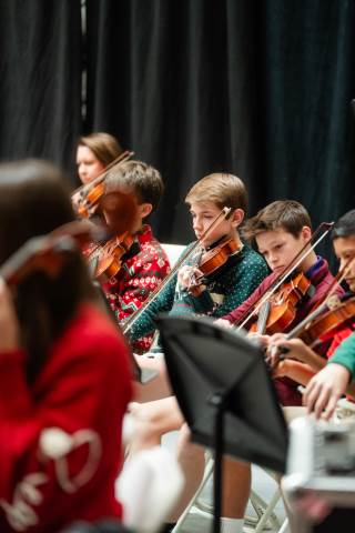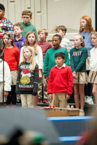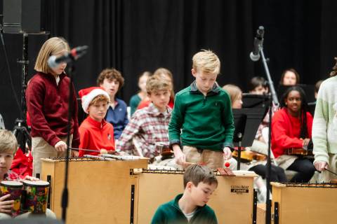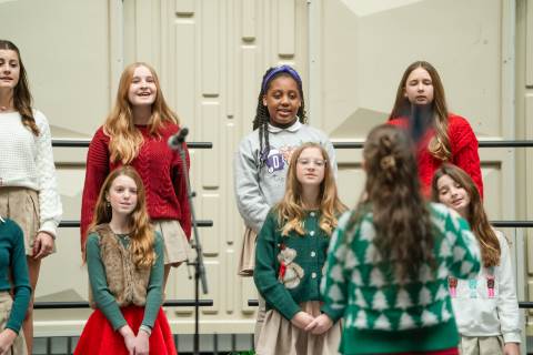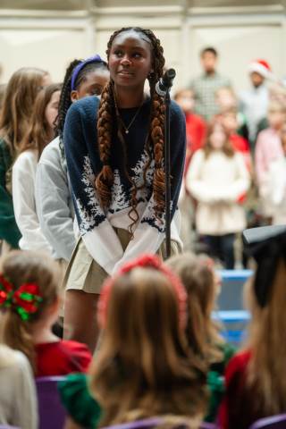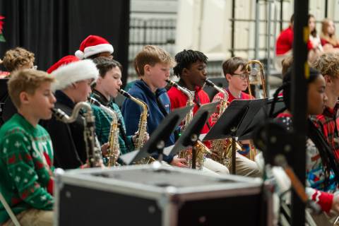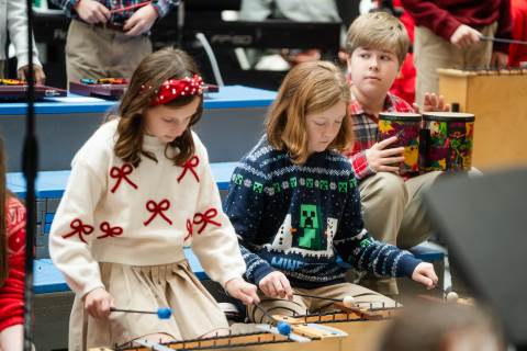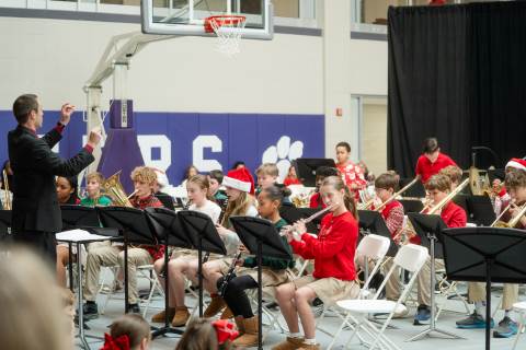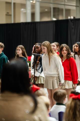 Pre-K to 8 students in Chorus, General Music, Band, Orchestra, Strings and Drama perform Christmas pieces for friends and family at the annual Pre-K to 8 Holiday Festival.