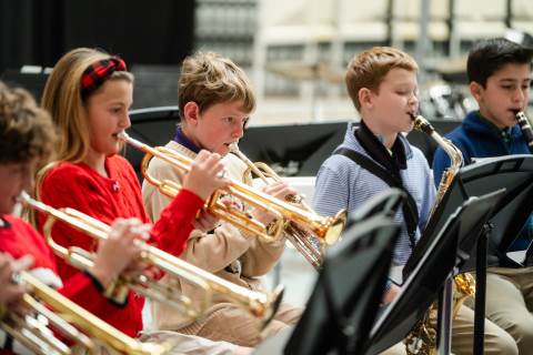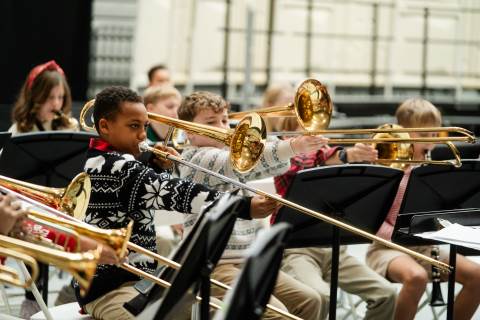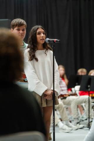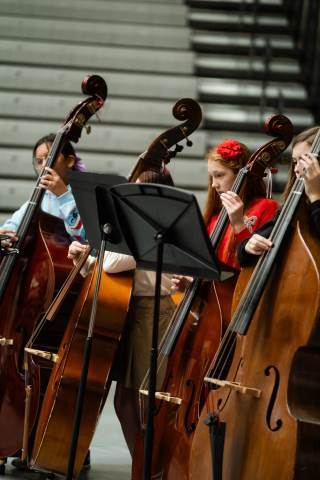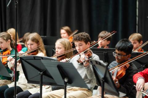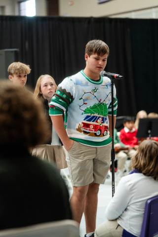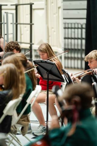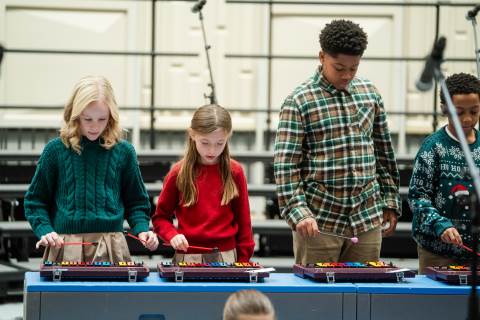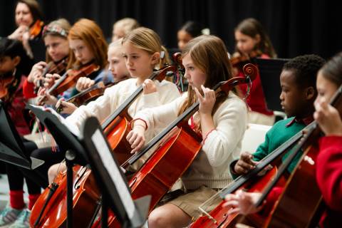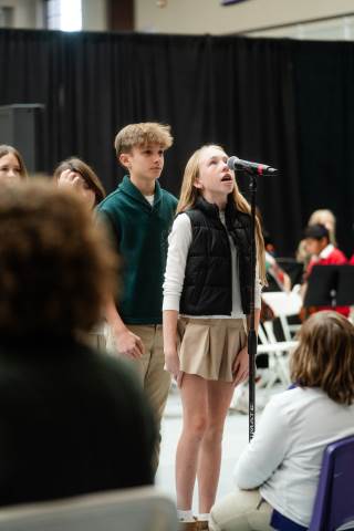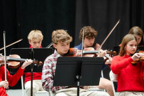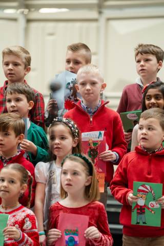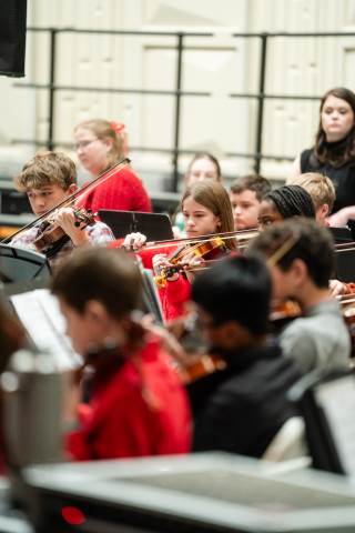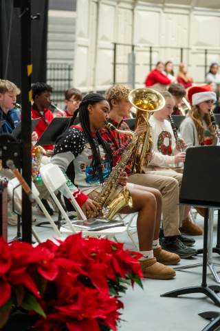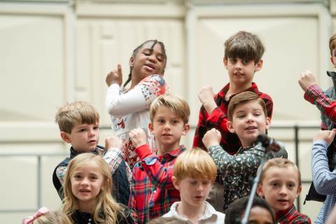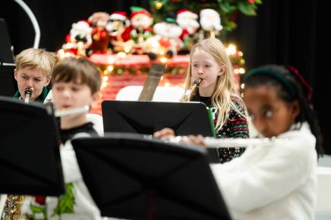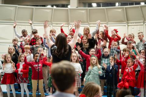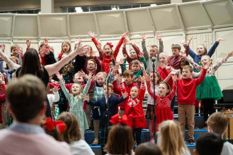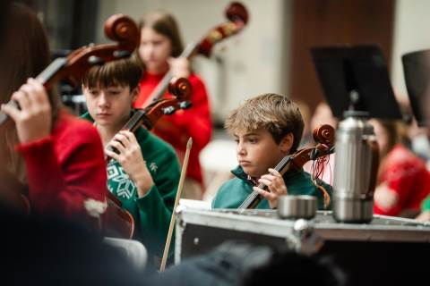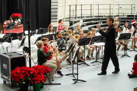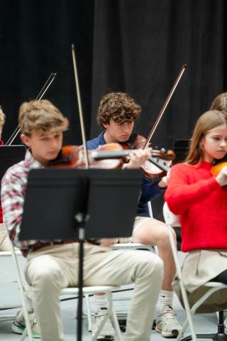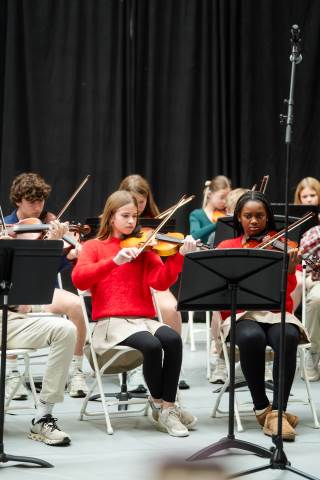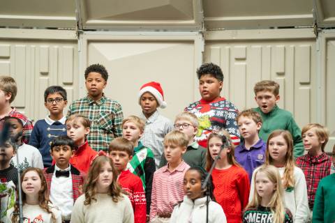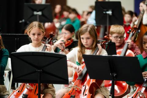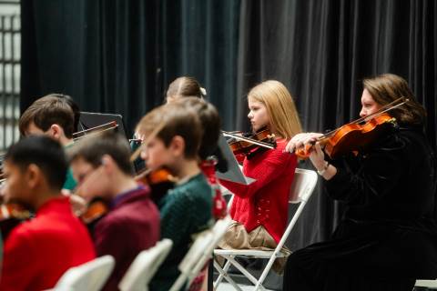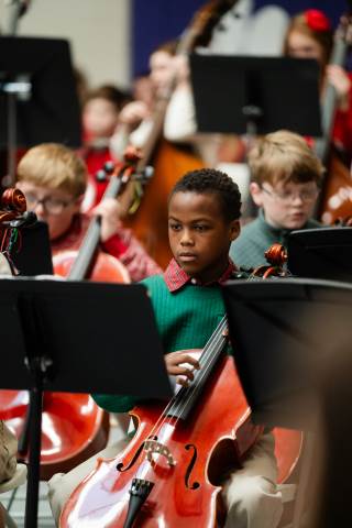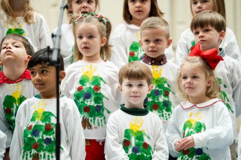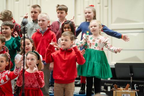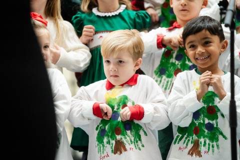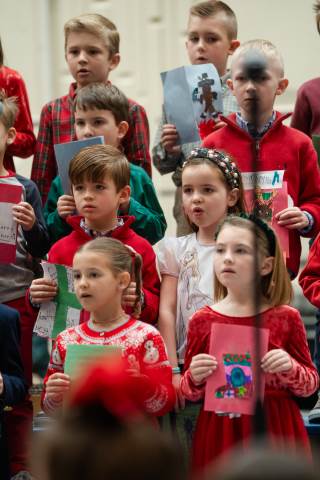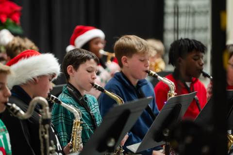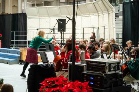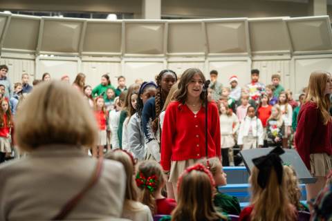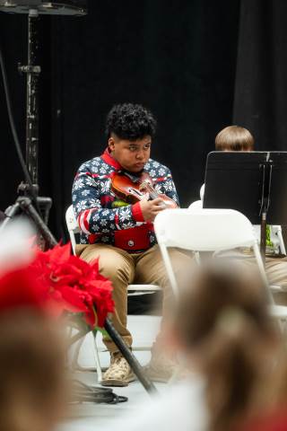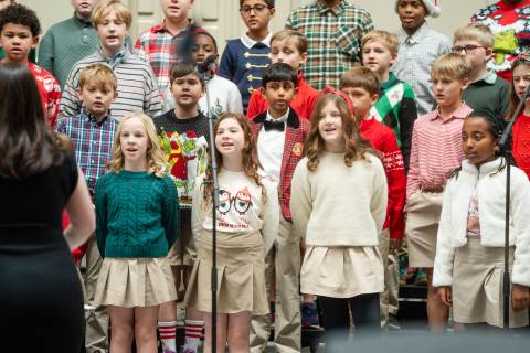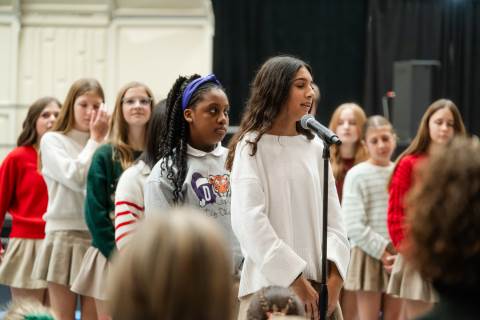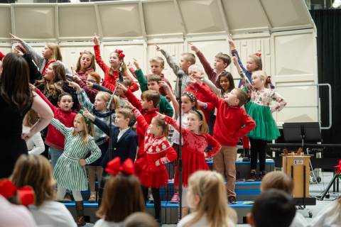Pre-K to 8 students in Chorus, General Music, Band, Orchestra, Strings and Drama perform Christmas pieces for friends and family at the annual Pre-K to 8 Holiday Festival.