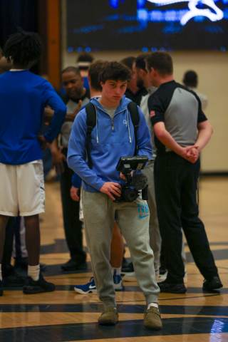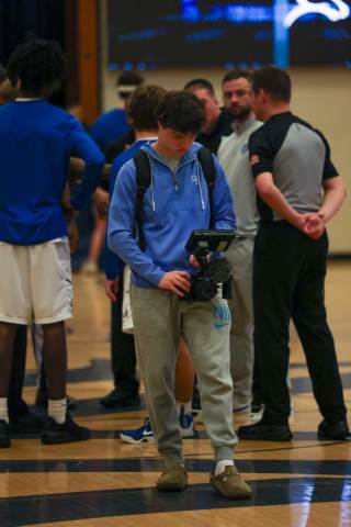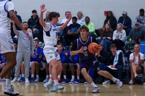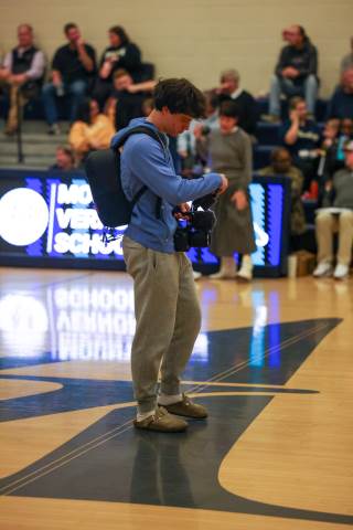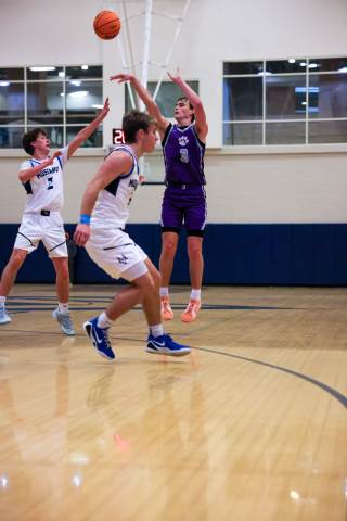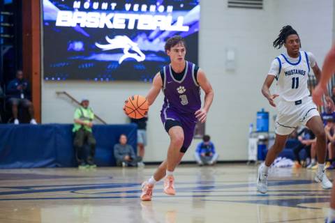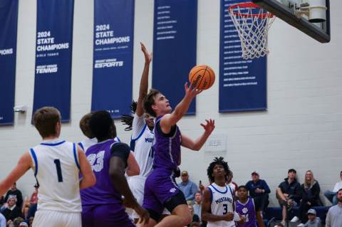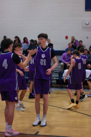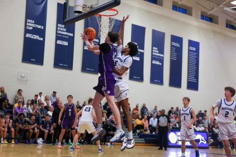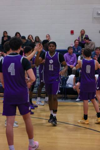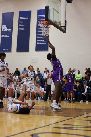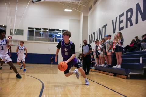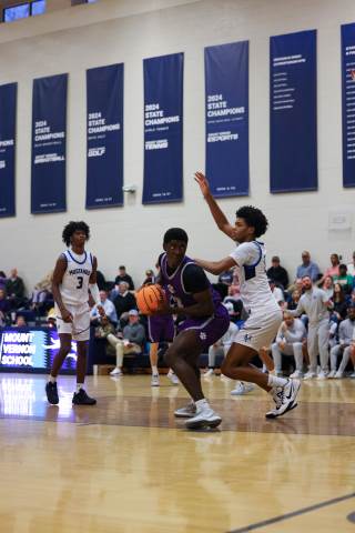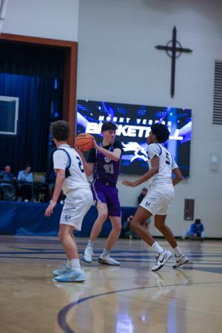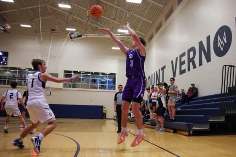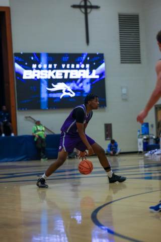The varsity boys' basketball team competes against Mount Vernon on the road.