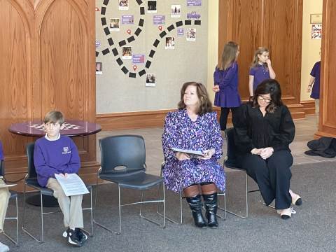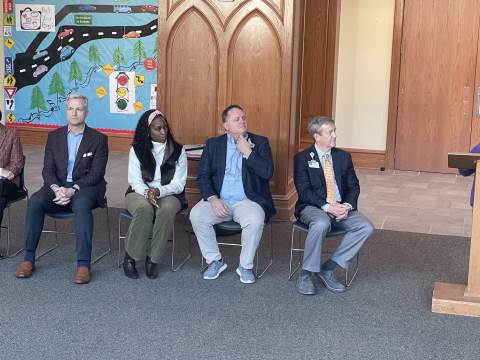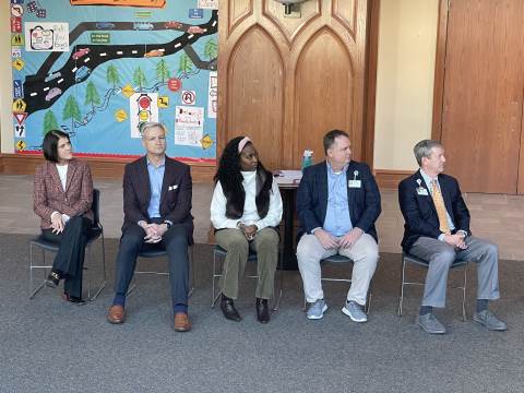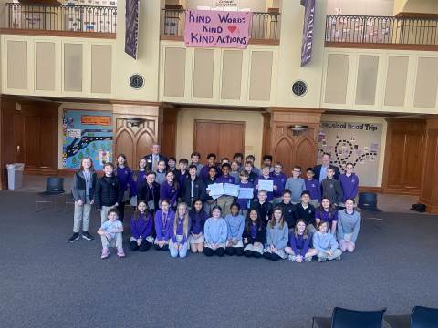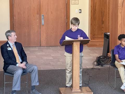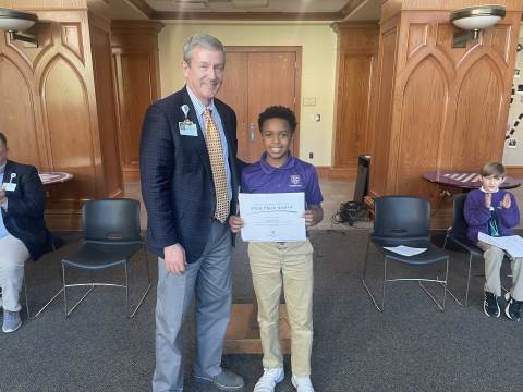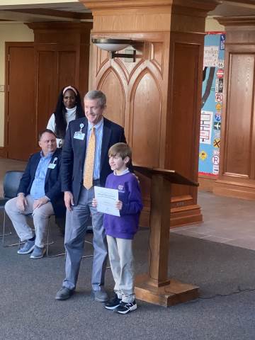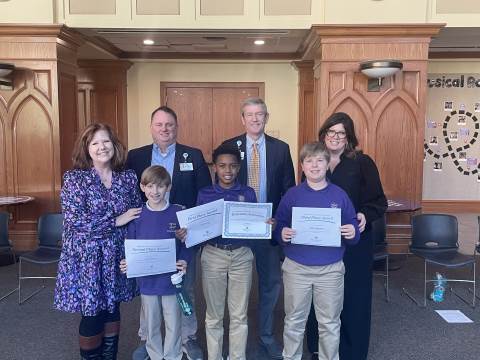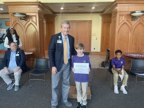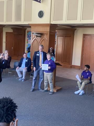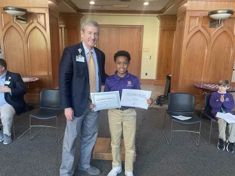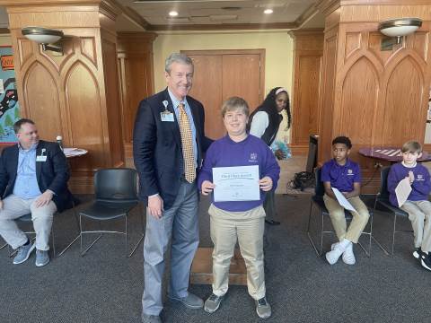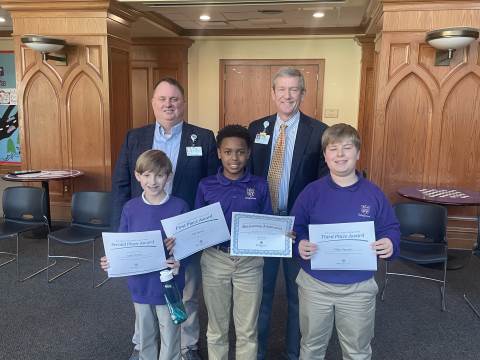 Representatives from Atrium Health Floyd Kurt Stuenkel and Will Byington as well as Tashia Twyman visited Darlington today to recognize fifth-grade MLK Jr. essay contest winners MJ Dean (also the county-wide winner), Jack Stone and Elliott Spears.
