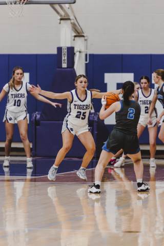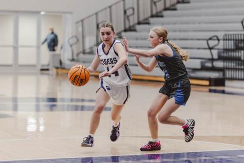 The girls' high school JV basketball team defeats Bremen 32-22.