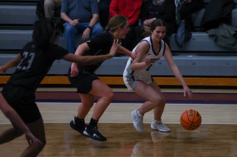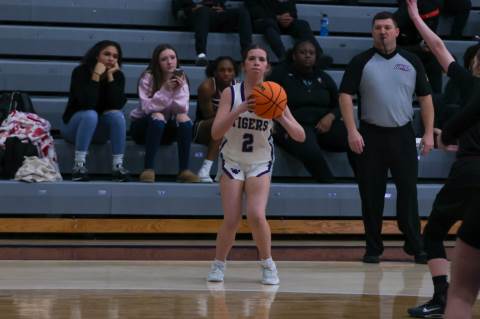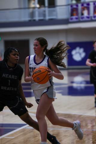 The girls' varsity basketball team competes against Heard County during their Senior Night.