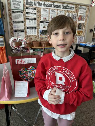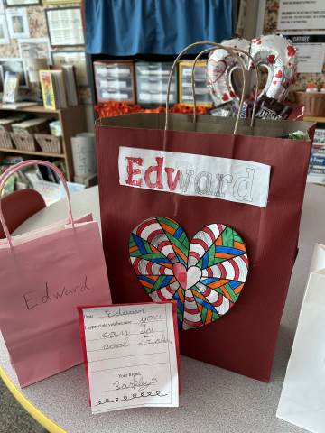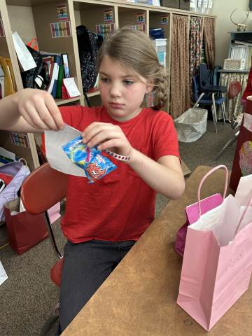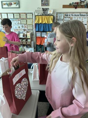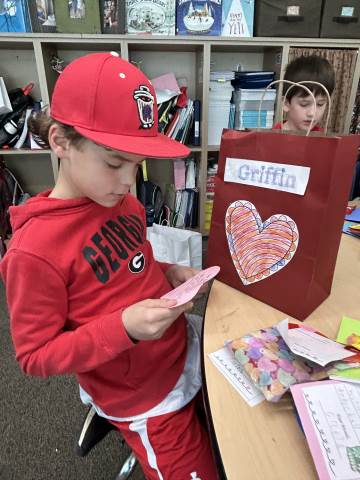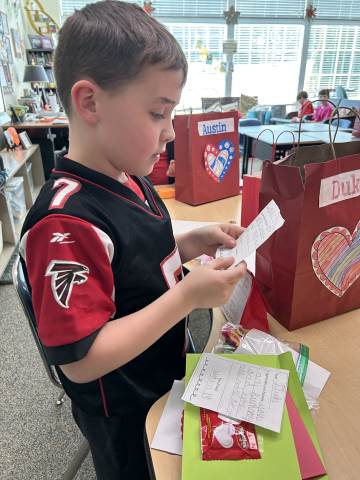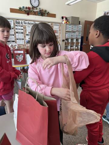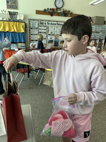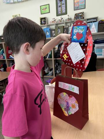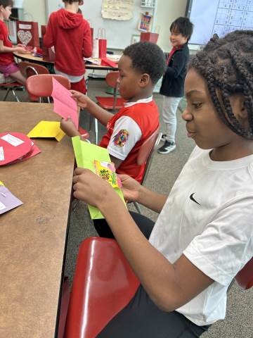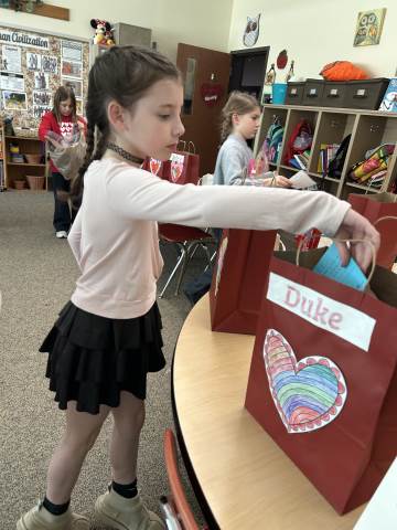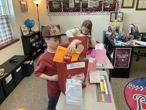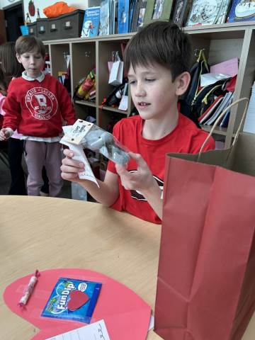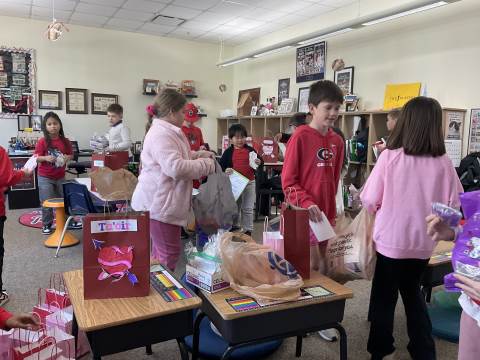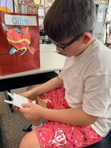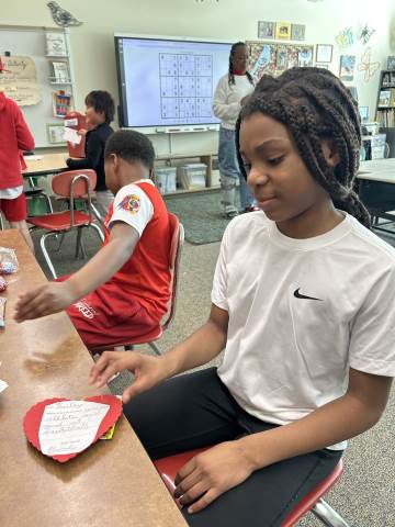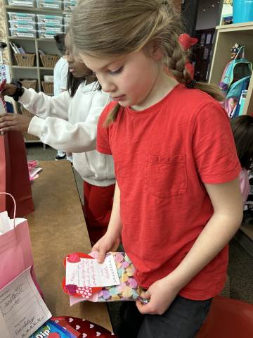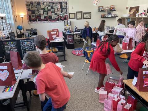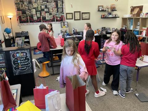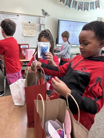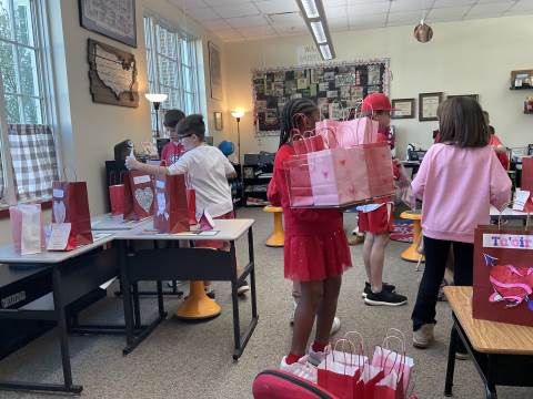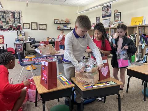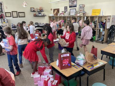 It's a tradition that third-graders celebrate Valentine's Day by trading "appreciation hearts" with classmates. Students write what they appreciate about their peers on Valentine hearts and share the hearts while enjoying Valentine-themed treats. Everyone enjoys reading the special words written about them by their friends.