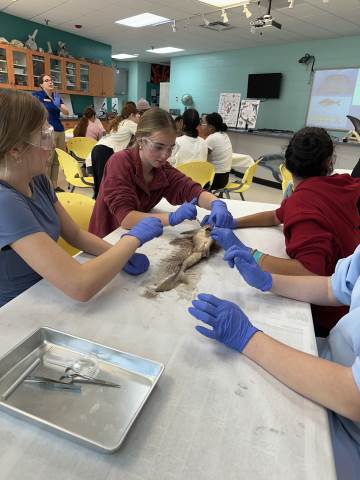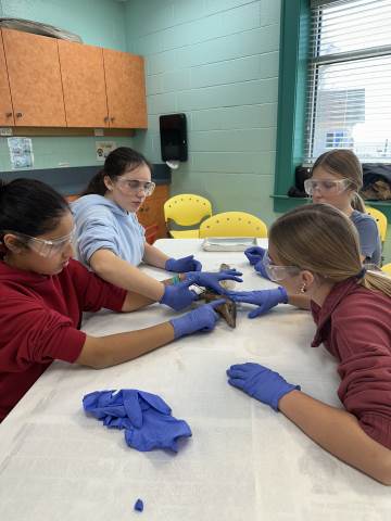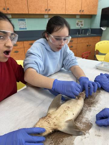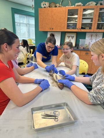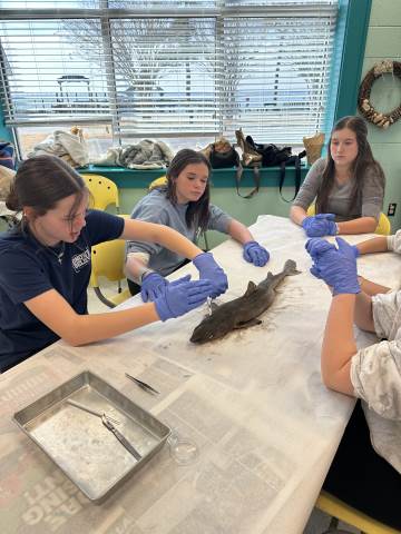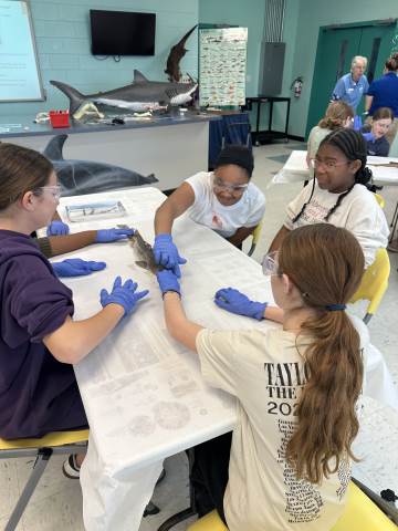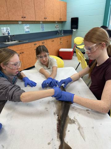 The seventh-grade students had an opportunity to travel back in time by visiting important historical places like Pamplin Park, Williamsburg, Jamestown, and Kitty Hawk to see the Wright Brothers National Memorial. They also got to walk through the Jockey's Ridge State Park. Finally, they got to dissect a shark at the Roanoke Aquarium.