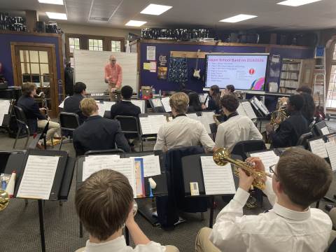The Upper School Band has continued their journey toward Large Group Performance Evaluation (LGPE) throughout this semester. This has required diligent rehearsals and close attention to details. We have been pleased to welcome a few special guests into the band room to give us advice on how we can be our absolute best for this important adjudication.