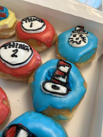 In celebration of Read Across America Day and Dr. Seuss' birthday, third-graders learned about his life and read some of his books. We also ate special Dr. Seuss donuts.