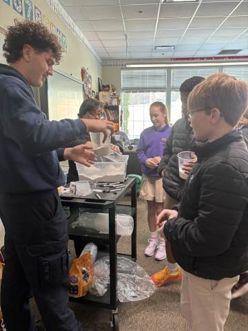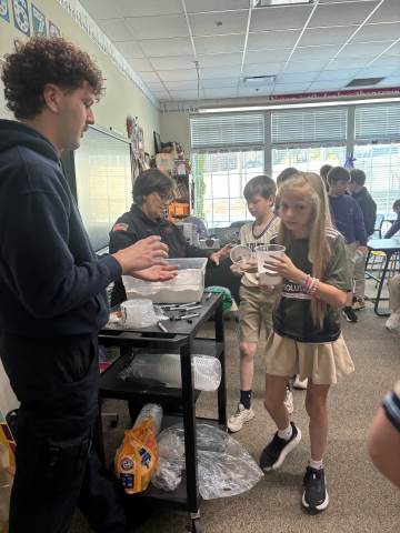 Fifth-grade students designed innovative, life‑saving baking soda containers intended for safe and effective use during grease fires. Their project combined creativity with practical fire‑safety knowledge, demonstrating an impressive understanding of real‑world problem‑solving at a young age.