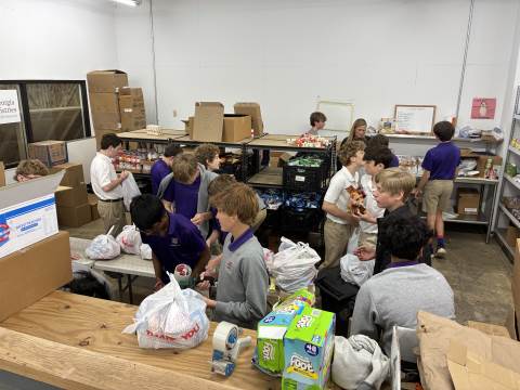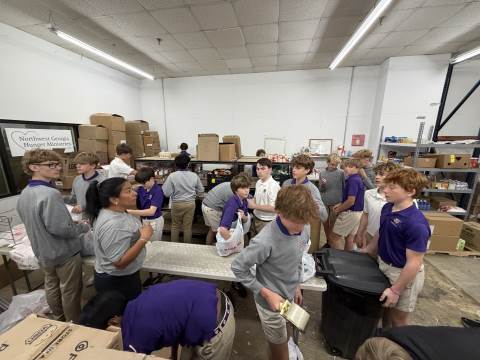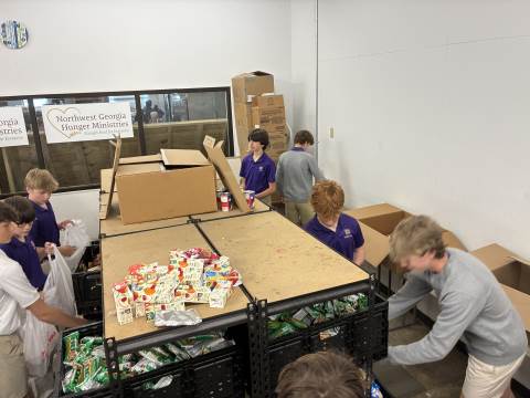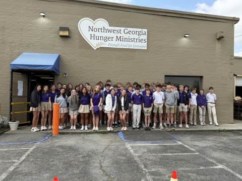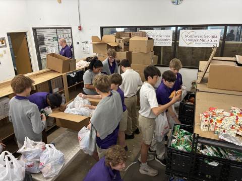 Students in our eighth-grade Capstone course had the opportunity to visit the Northwest Georgia Hunger Ministries, where they served their community in a variety of meaningful ways. They helped pack Backpack Buddies, assisted in the grocery store, loaded vehicles, worked in the warehouse, and took on various odd jobs such as breaking down boxes. The experience allowed students to give back in their own community, while learning the value of service. They also look forward to learning more about the ministry and to partnering with the director again in the near future.