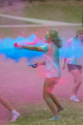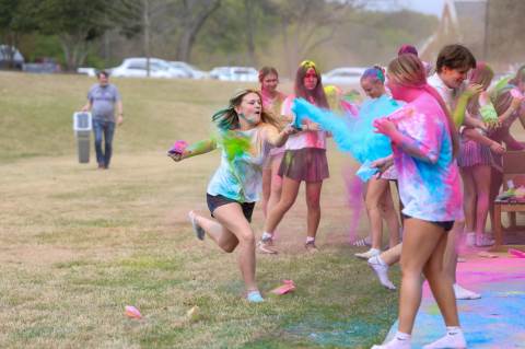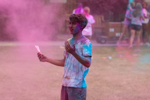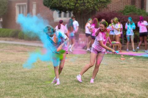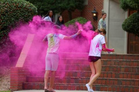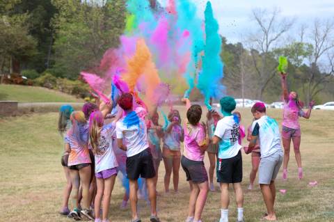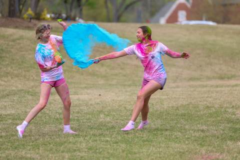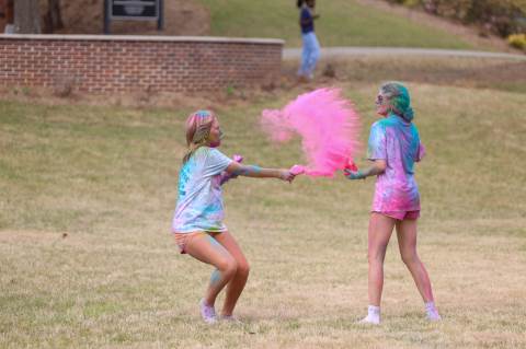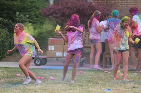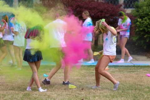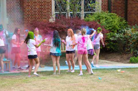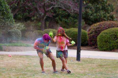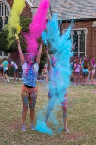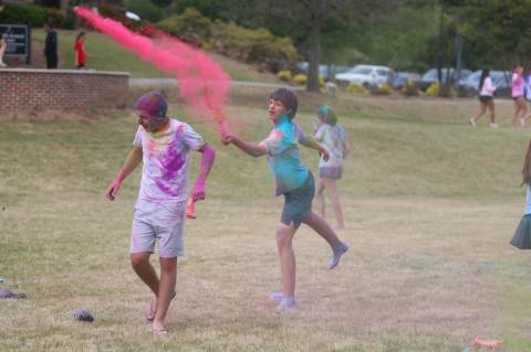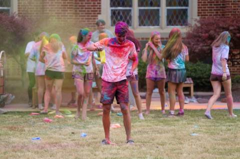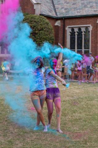 Upper School students attend the Holi celebration, hosted by the Asian Student Union. Holi is a traditional Hindu celebration and festival of colors representing love and spring.