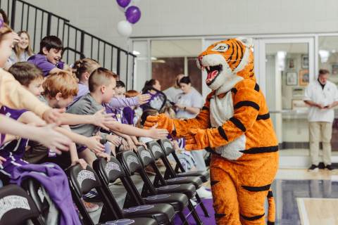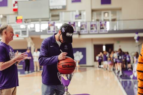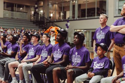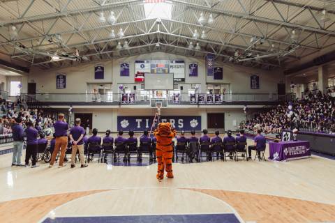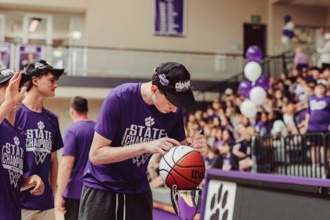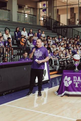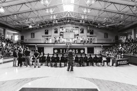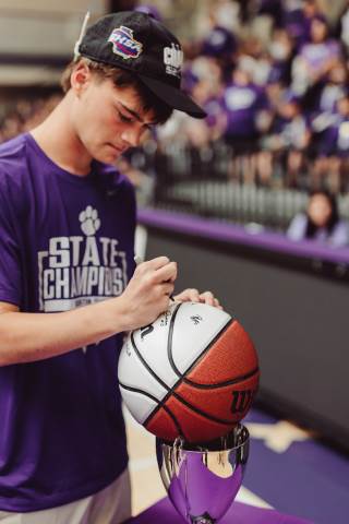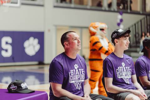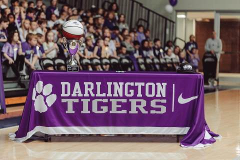 The Darlington Community came together to celebrate a historic milestone — honoring the varsity boys’ basketball team after capturing the GHSA A-AAA Private State Championship on March 11, the first in program history. Head coach Nathan West shared a heartfelt address before the community premiered a documentary created by junior Brooke Temple (featured in this gallery). The event concluded with players and coaches cutting down the net and signing the ball, capping off an unforgettable championship season.