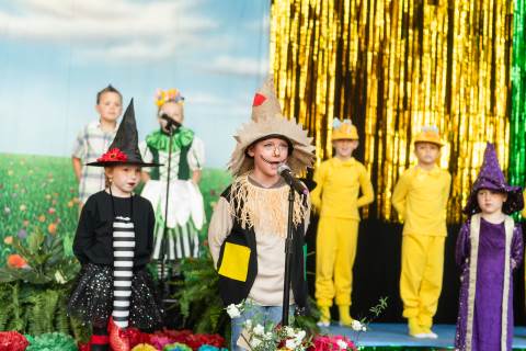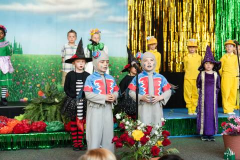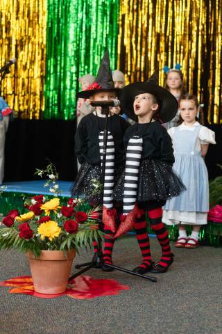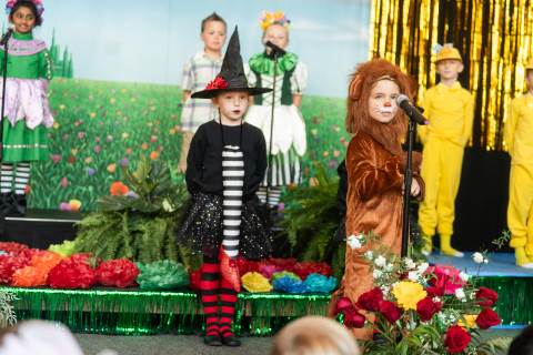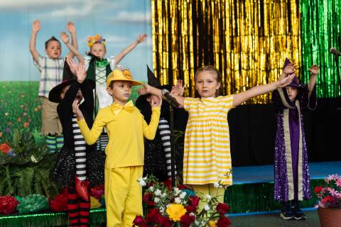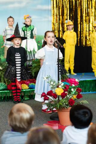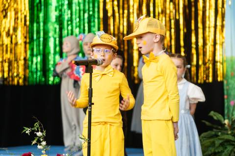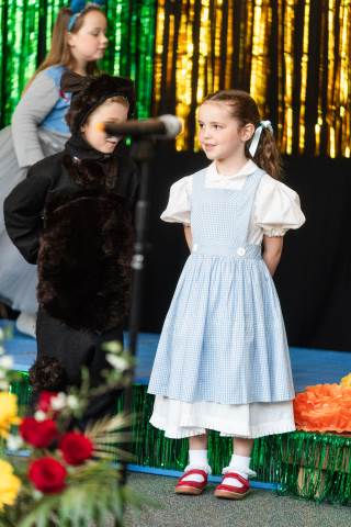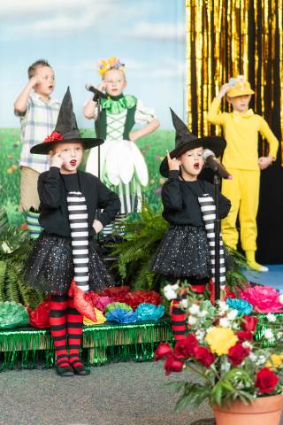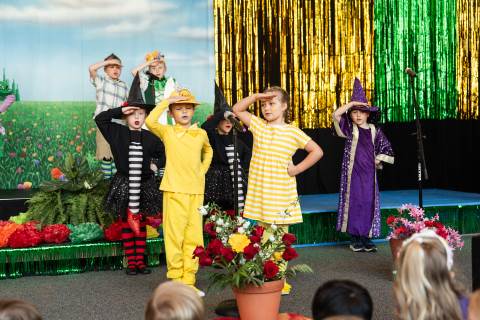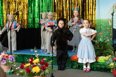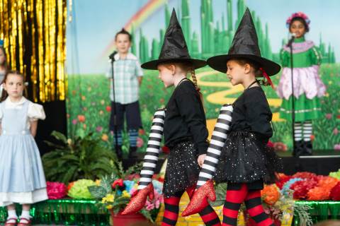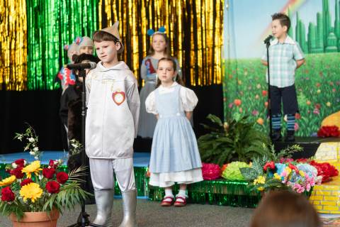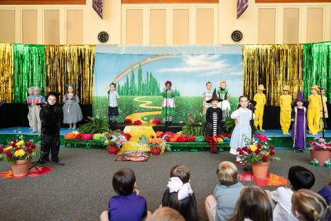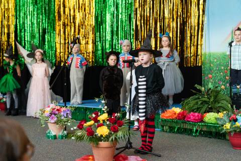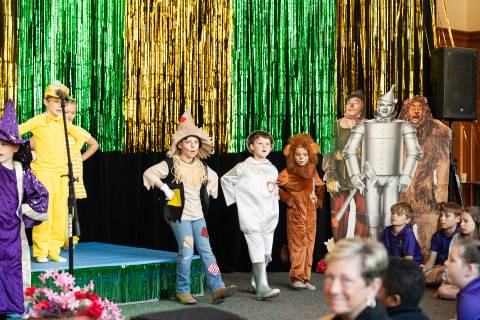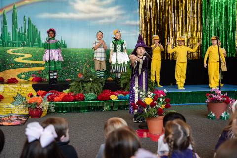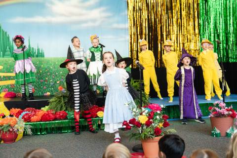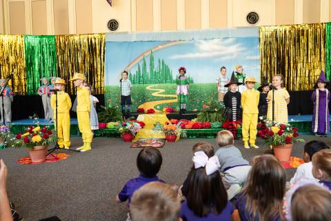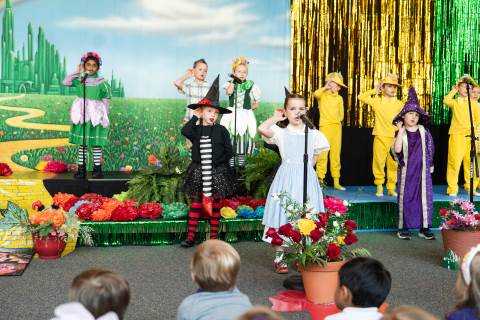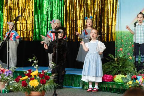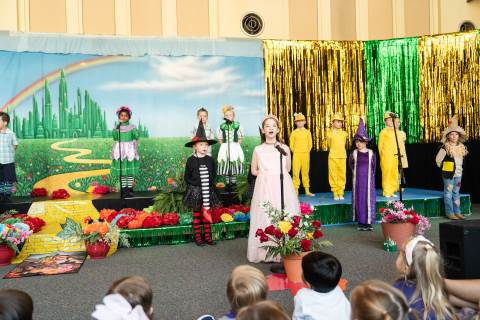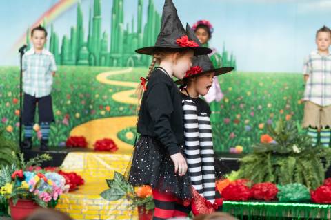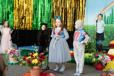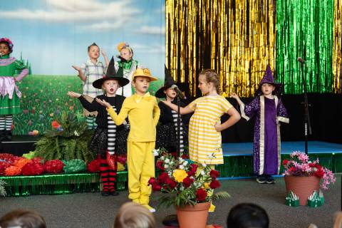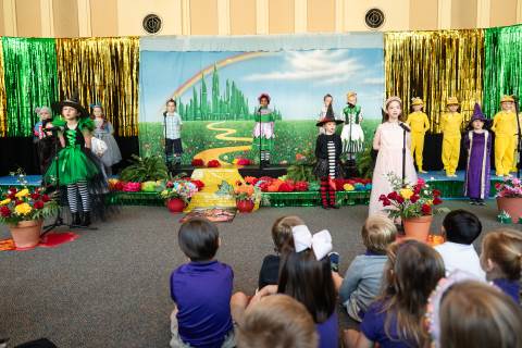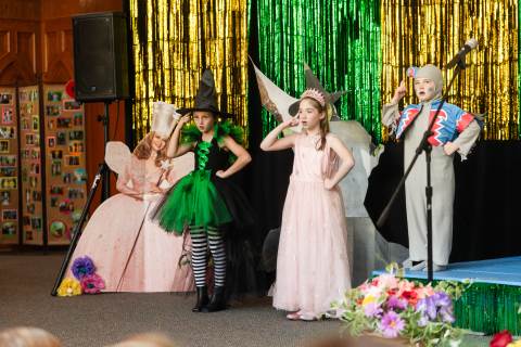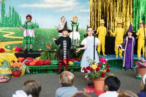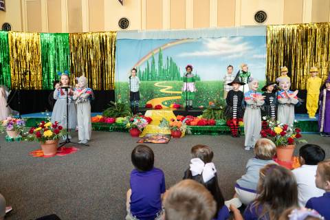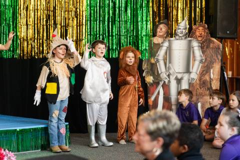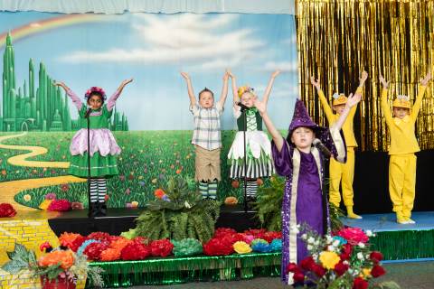 First grade presents their play, "Munchkin Mediation," a spin on "The Wizard of Oz" where the characters from the classic story learn conflict resolution skills.