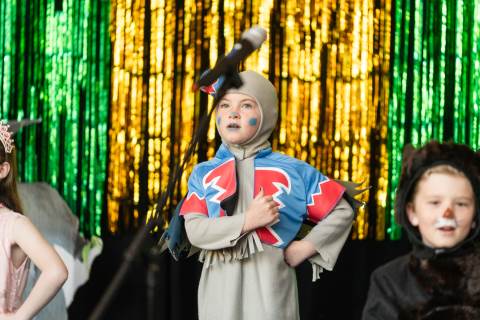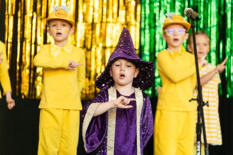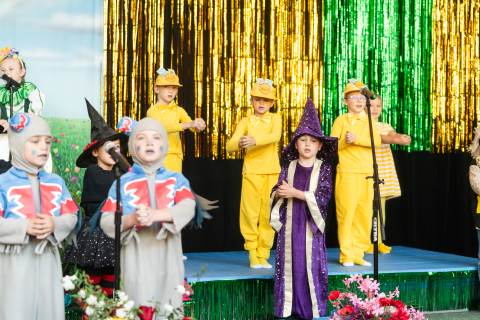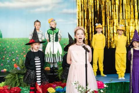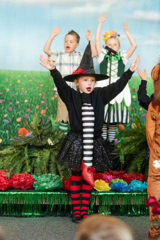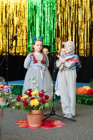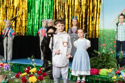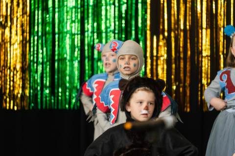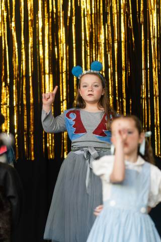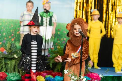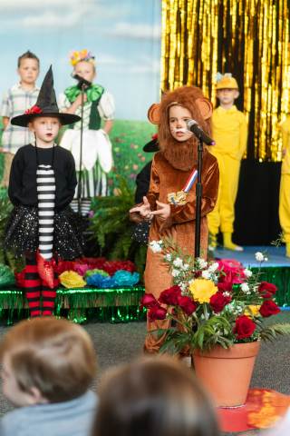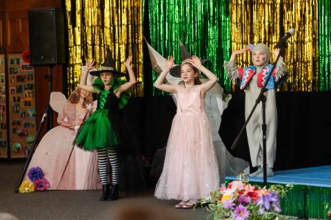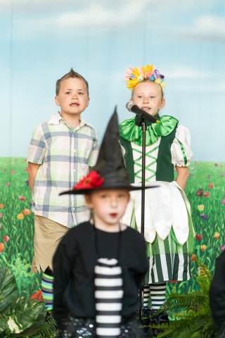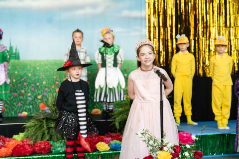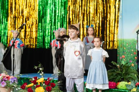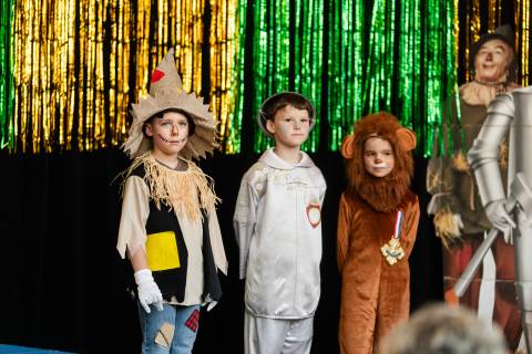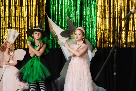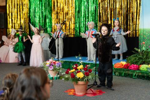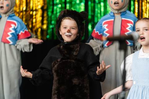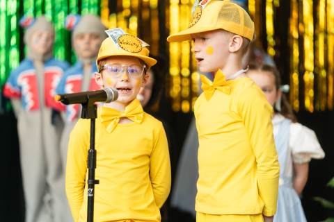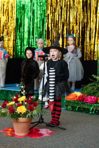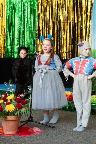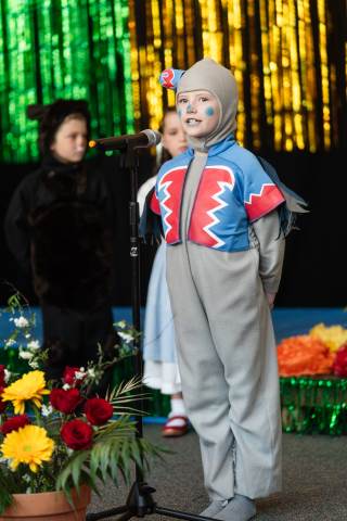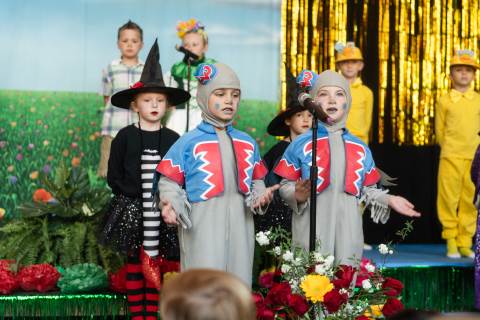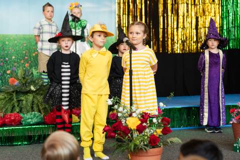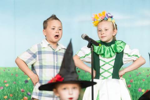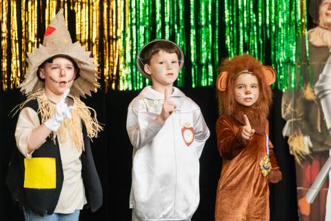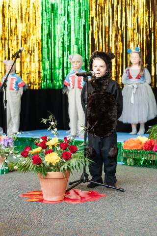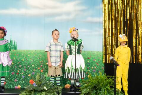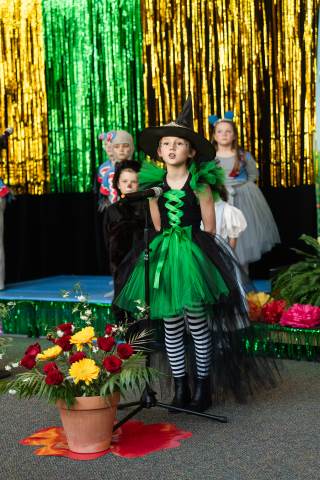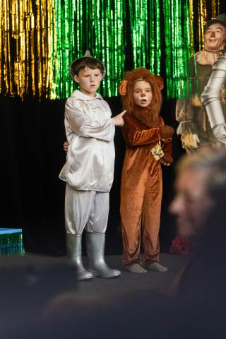 First grade presents their play, "Munchkin Mediation," a spin on "The Wizard of Oz" where the characters from the classic story learn conflict resolution skills.
