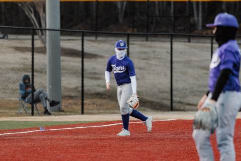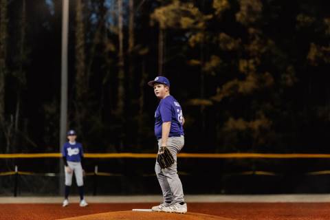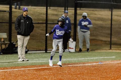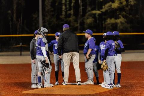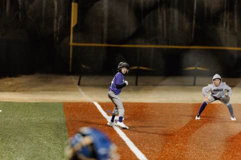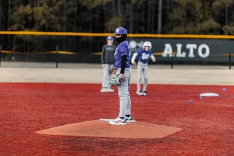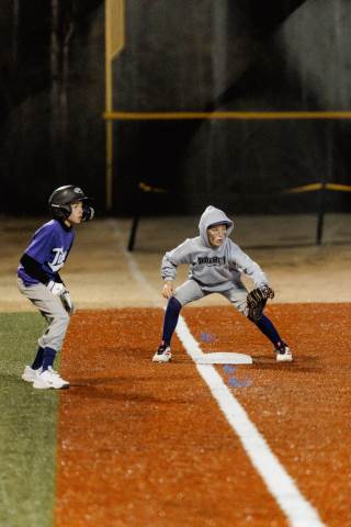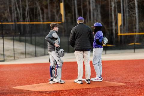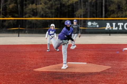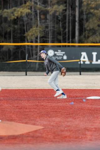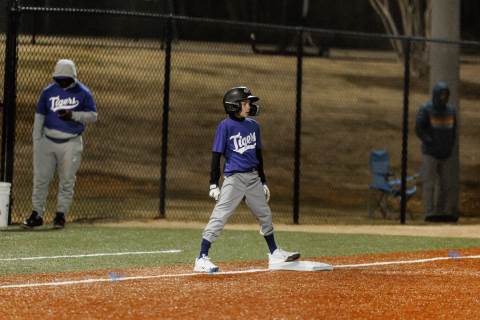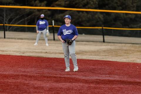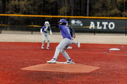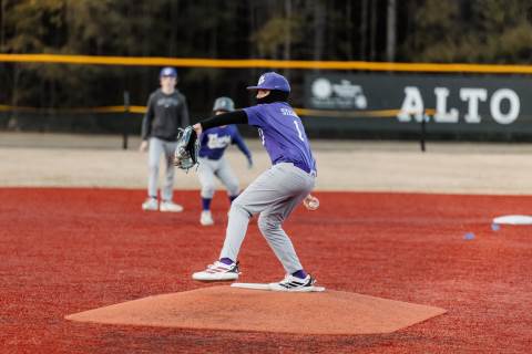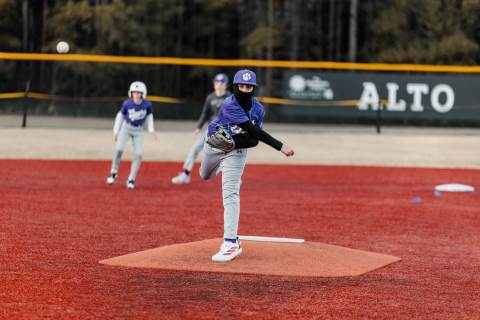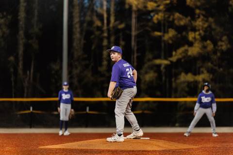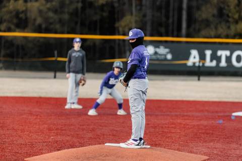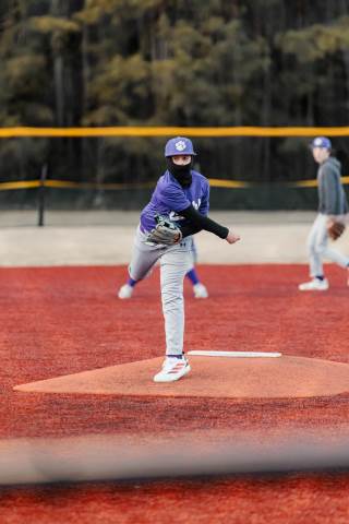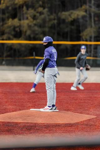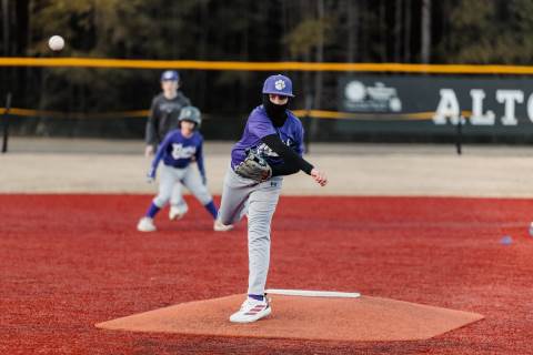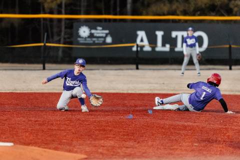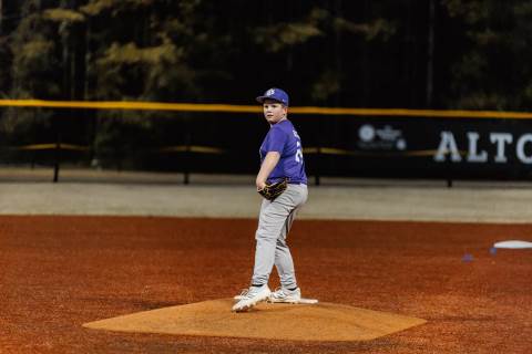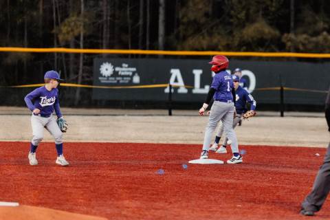 The JV middle school baseball team competes against the Darlington fifth grade baseball team in a purple and white scrimmage at Alto Park.