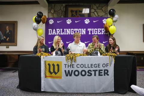 Henry Ledbetter ('25) signs his letter of intent to play baseball at the College of Wooster.