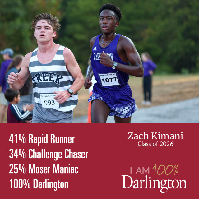 Find out how you can be 100% Darlington, too, by requesting a personal campus tour at www.darlingtonschool.org/visit or contacting admission@darlingtonschool.org.