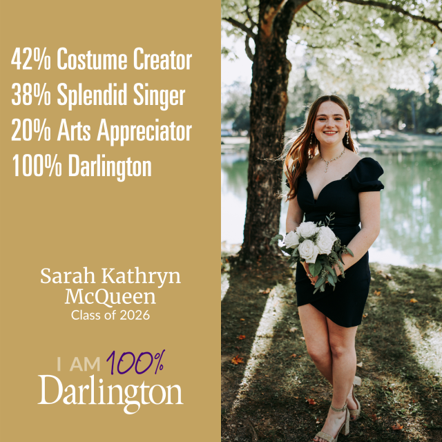 A Darlington student is made up of many things. None of which is average. We help our students develop their interests, passions and pursuits, because we believe every individual has something to contribute. We also believe that only when you're 100% you, are you 100% Darlington.