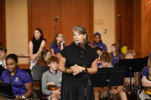 The middle grades band, orchestra and chorus perform a fall concert at Thatcher Hall.