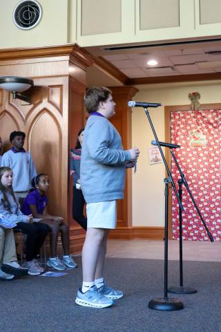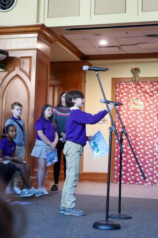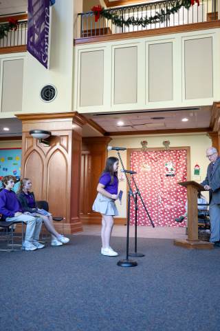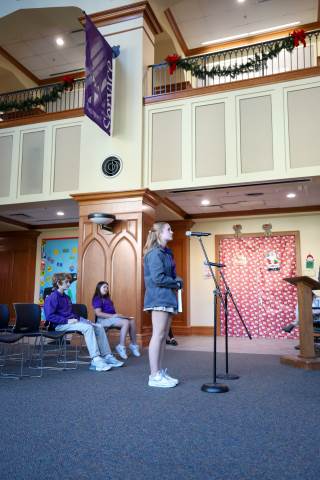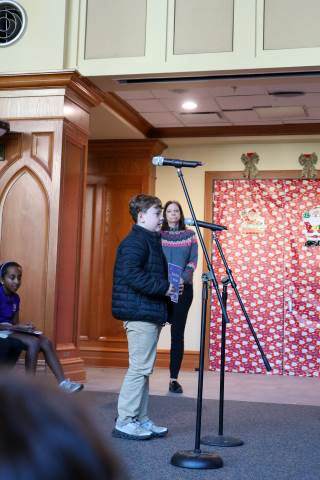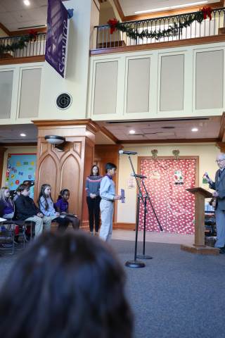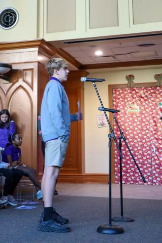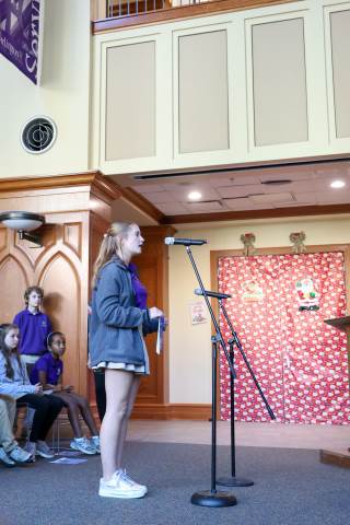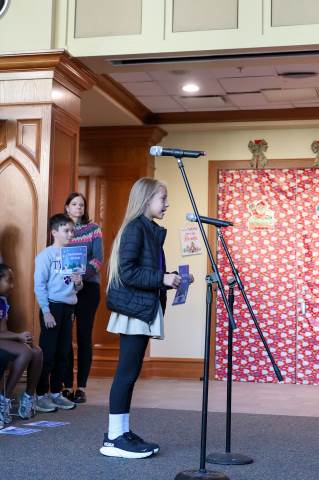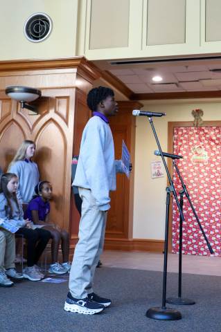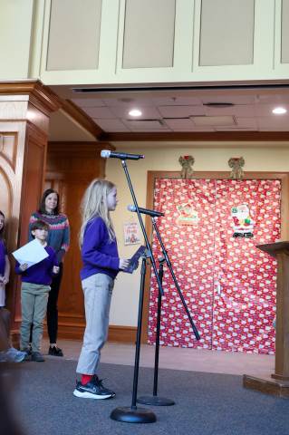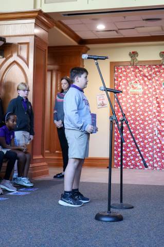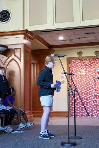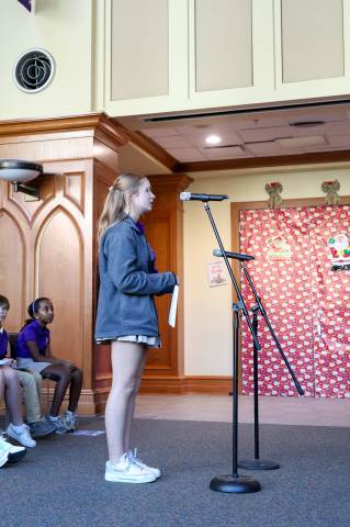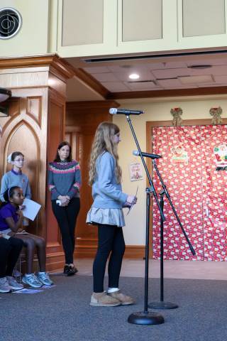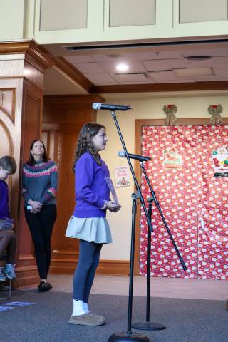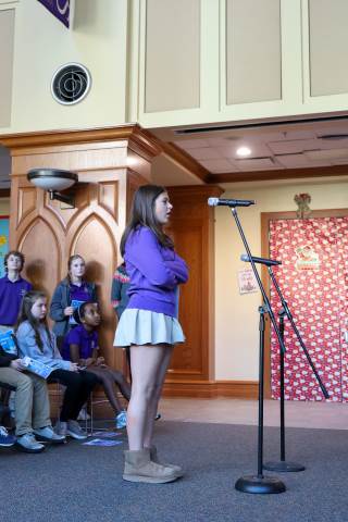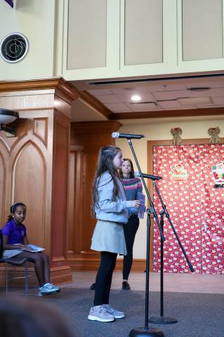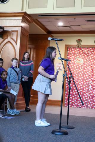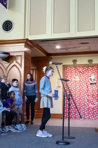 Thirty-three students from grades 4-8 participated in the annual Thatcher Hall Spelling Bee with fifth-grader Rosalie Fife coming in first place after correctly spelling the word "swaggering."